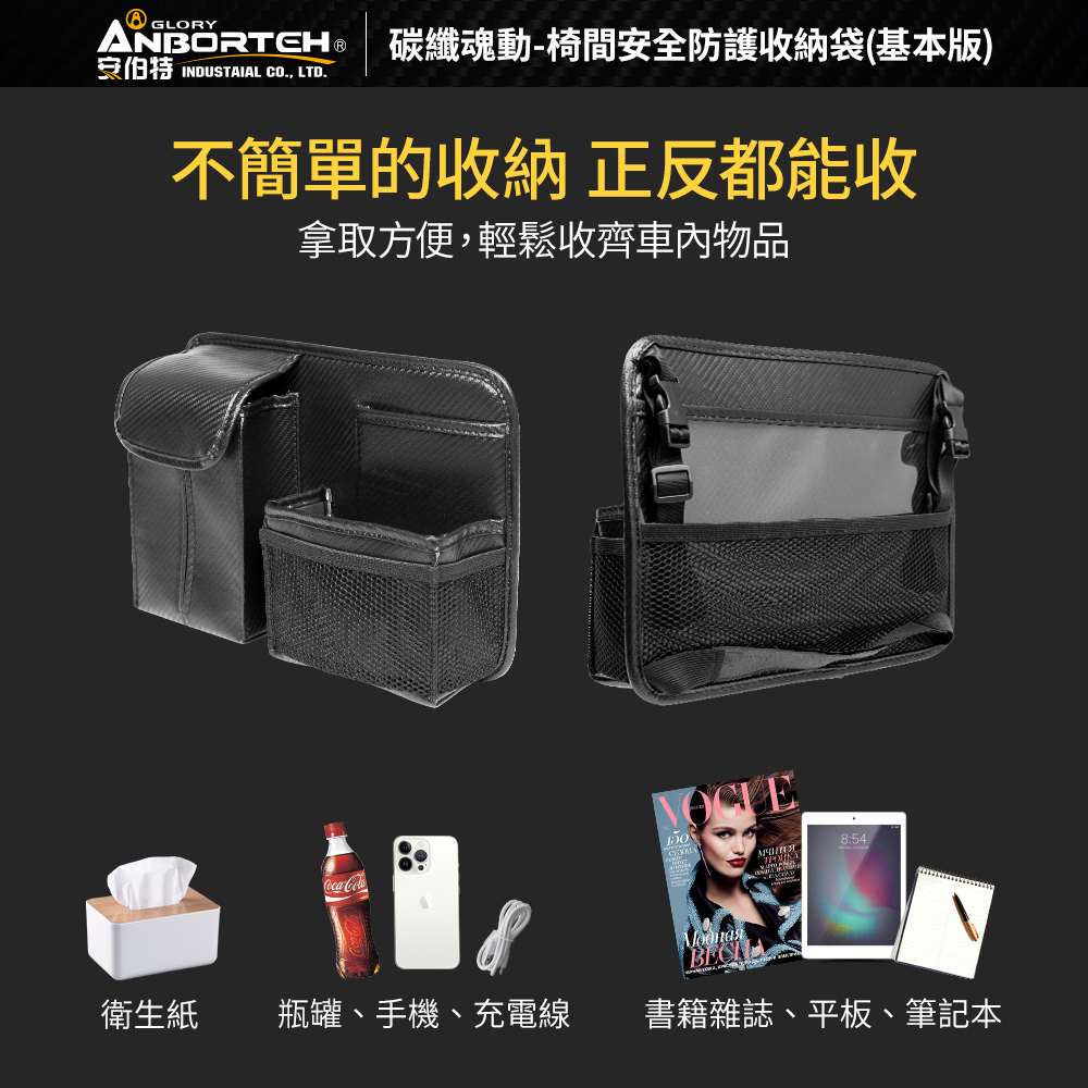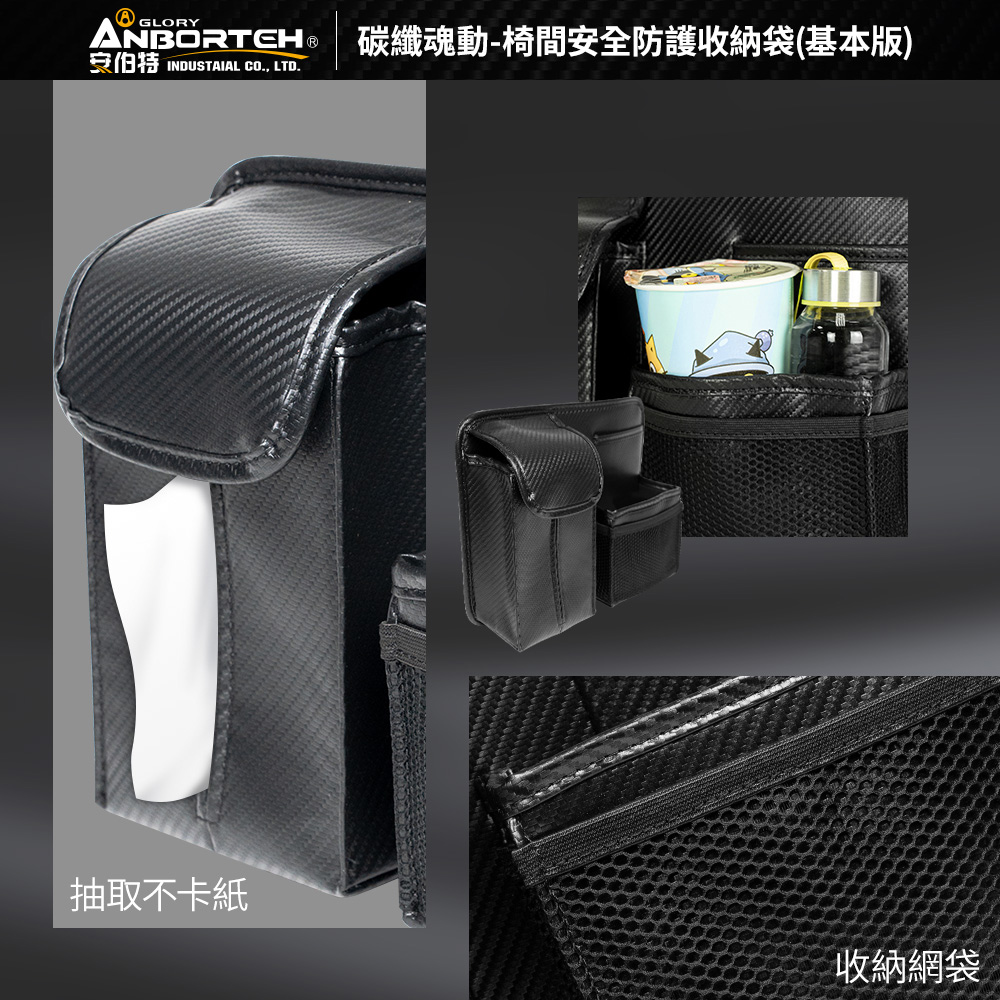 【安伯特】碳纖魂動 椅間安全防護收納袋-基本版可放置面紙、平板、水壺…等物品,拿取方便