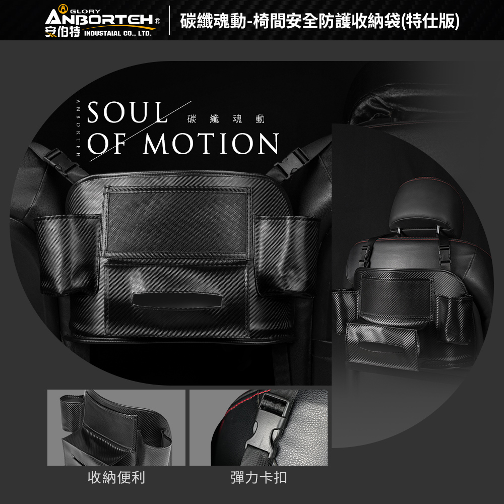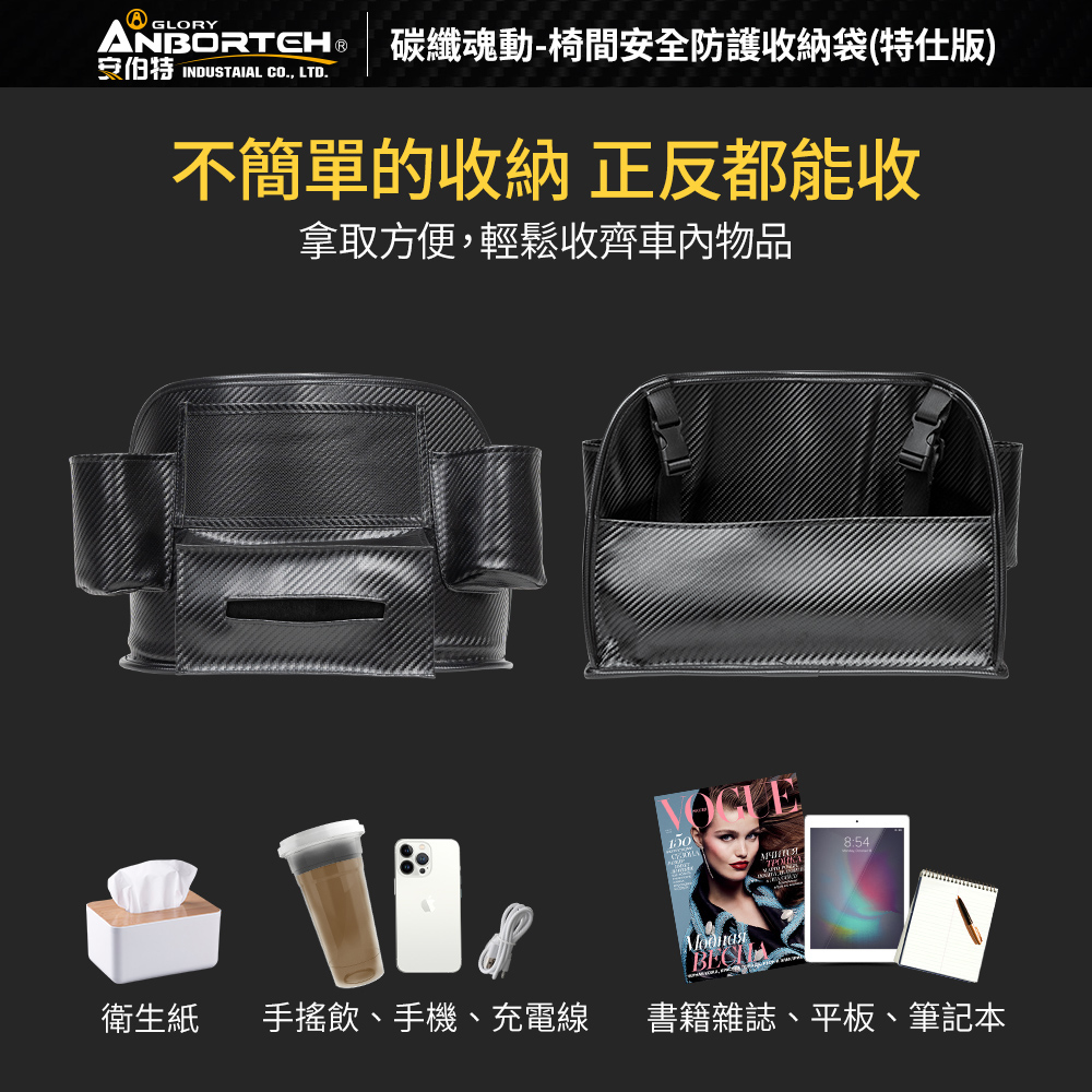 【安伯特】碳纖魂動 椅間安全防護收納袋-特仕版可放置面紙、平板、水壺…等物品,拿取方便