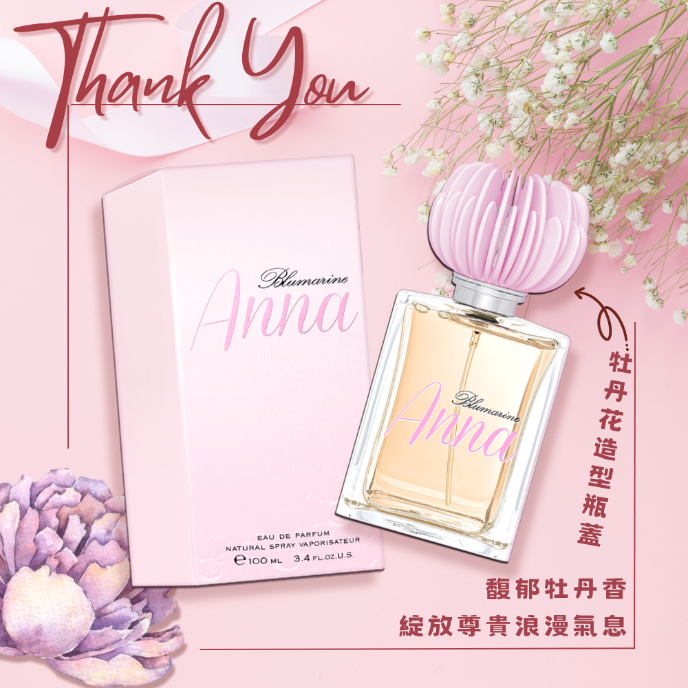 BLUMARINE 布魯瑪琳 Anna女性淡香精 100ML香 調: 木質花香調前 調: 多汁水果、桃子、蘋果中 調: 牡丹、玉蘭花、玫瑰、茉莉花後 調: 麝香、檀香、香草、喀什米爾香氛