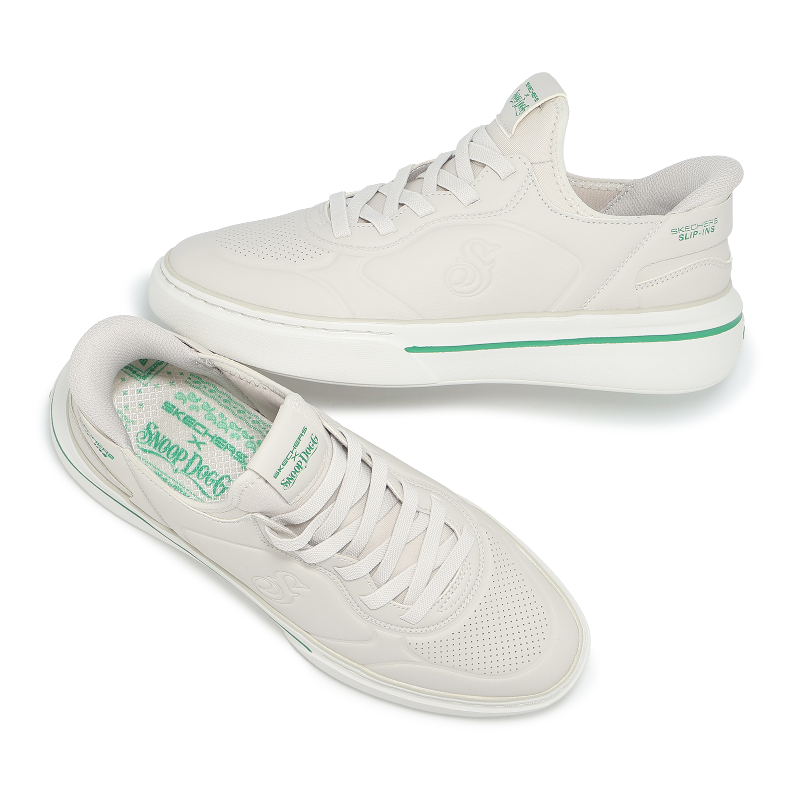 品牌: SKECHERS型號: 251100-OFWT品名: Snoop One-Next Episode版型: 腳寬者建議大半號*饒舌巨星 SNOOP DOGG 與 SKECHERS 的設計師合作,打造他獨有的系列鞋款,融合SKECHERS的創新舒適性和SNOOP的個性設計,運用充滿高級質感的光滑皮面鞋面以及立體壓紋,讓您能輕鬆展現SNOOP的時尚風采。