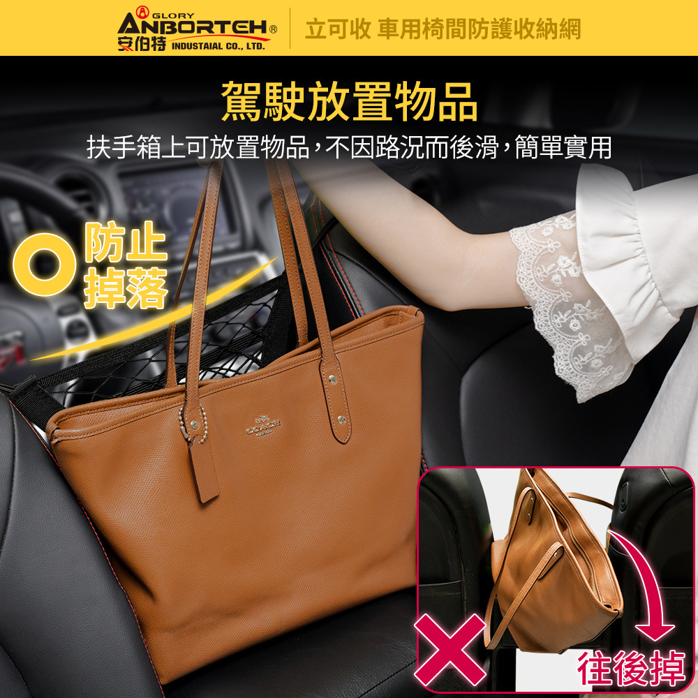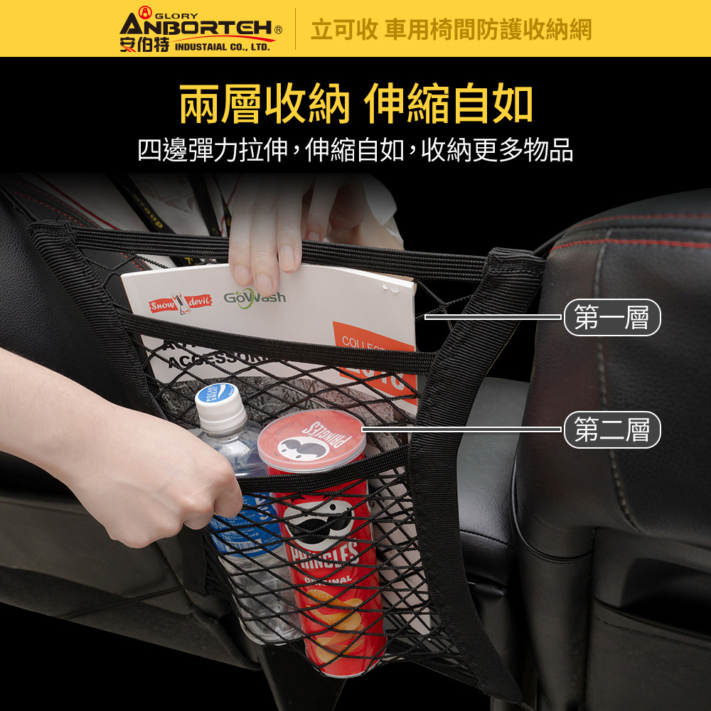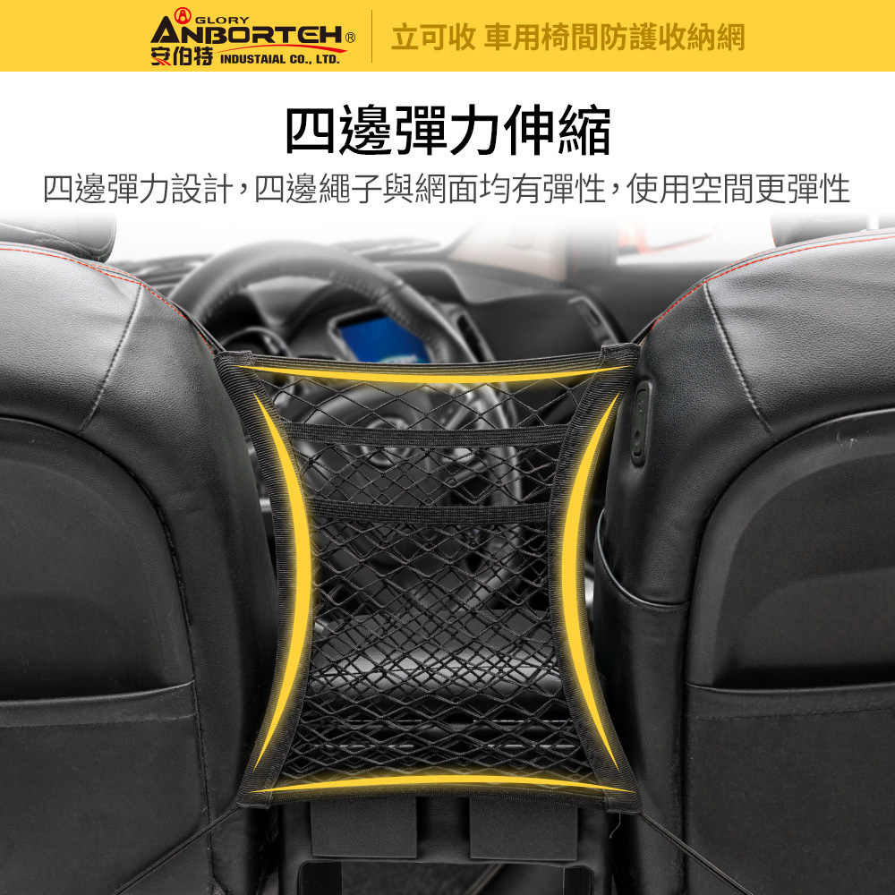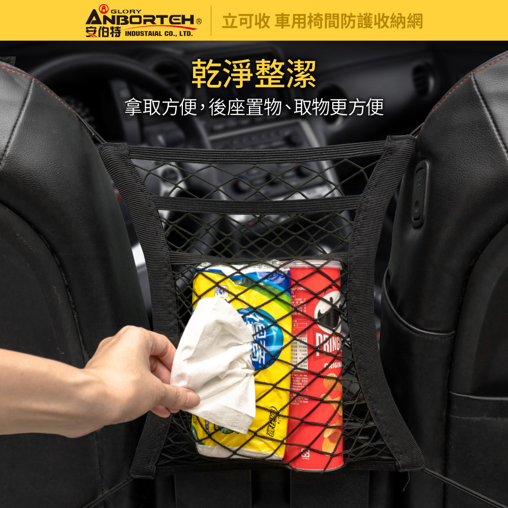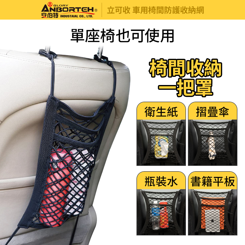 【安伯特】通用型 超彈力 車用椅間防護收納網可放置面紙、手機、水壺、雨傘…等物品,拿取方便