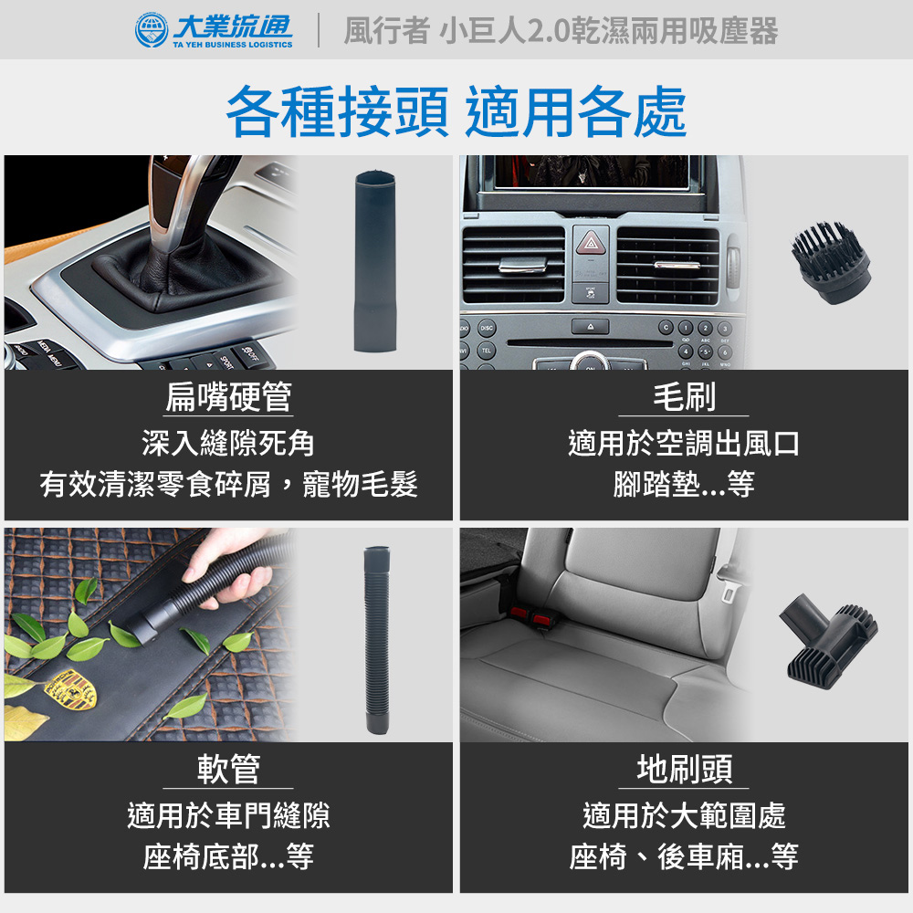 小巨人2.0乾濕兩用 車用吸塵器點煙插座~電源線長375cm後車箱都能用買一送六,多種接頭,依照需求自由選擇