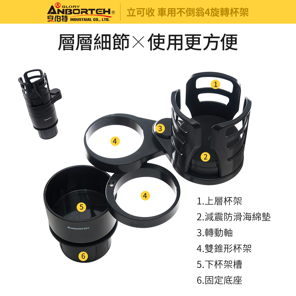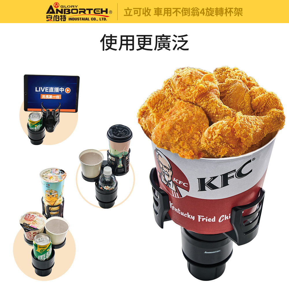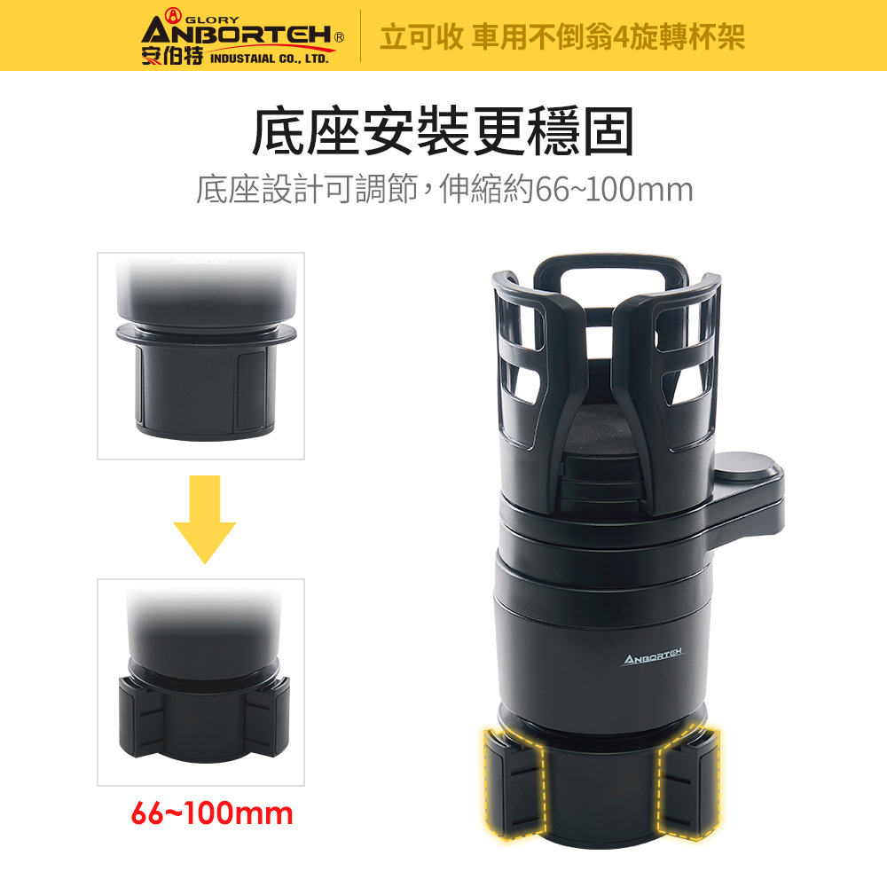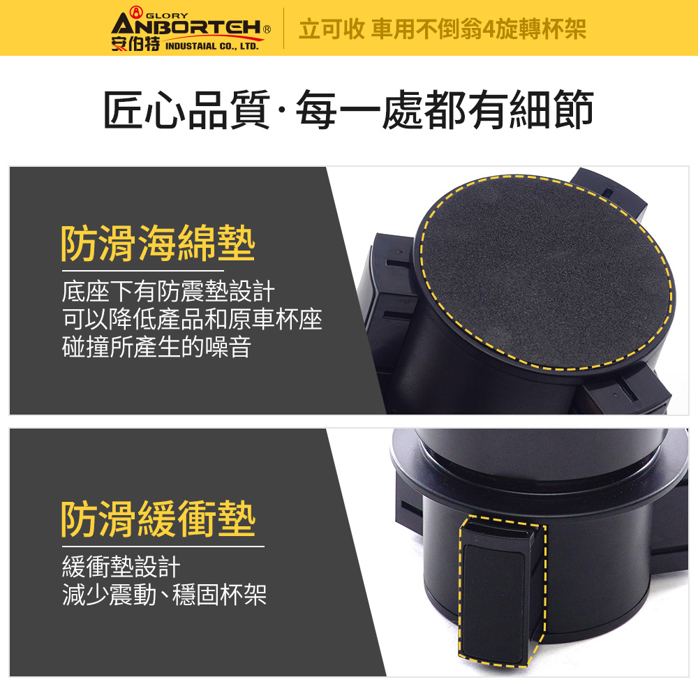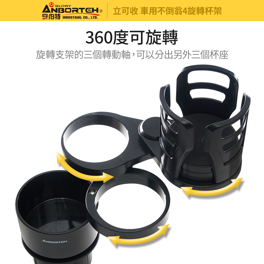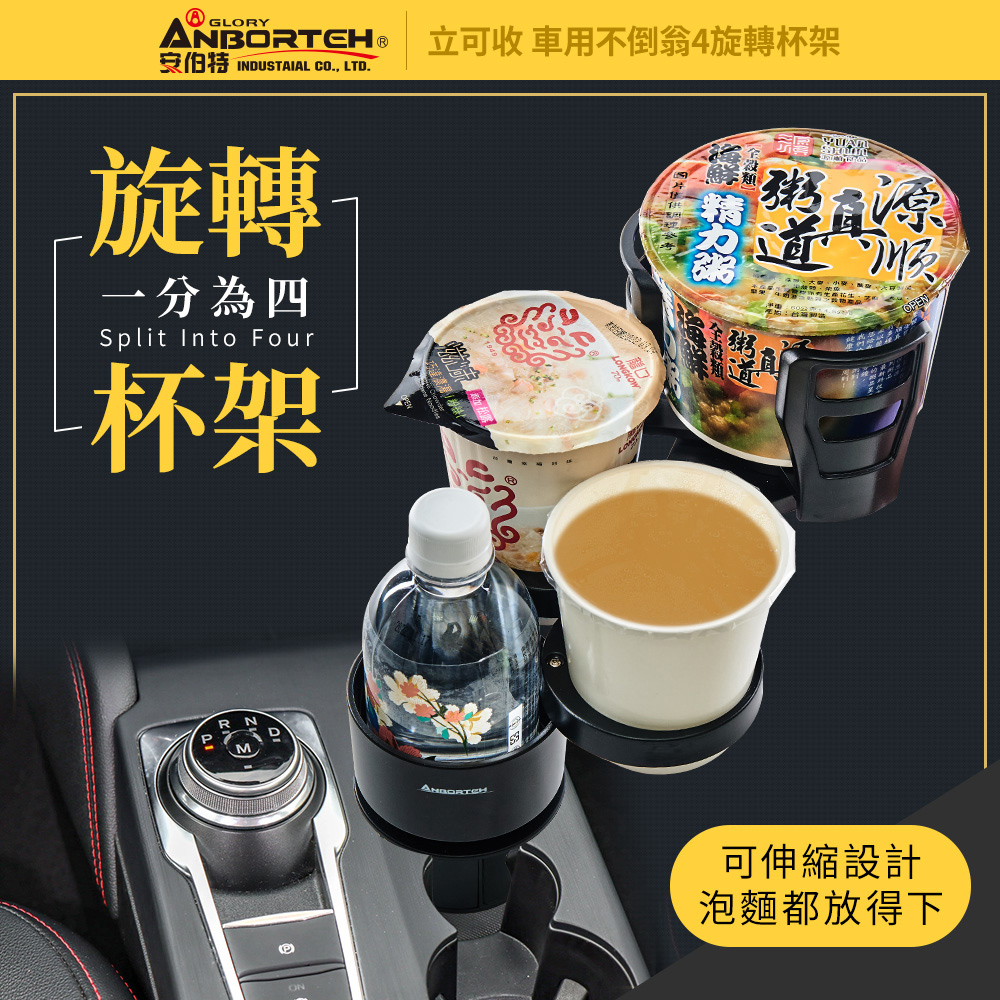 【安伯特】車用不倒翁4旋轉杯架收納方便,可增加車內空間手機平板,眼鏡,鑰匙,零食餅乾皆可安裝快速,隨心調整,攜帶方便