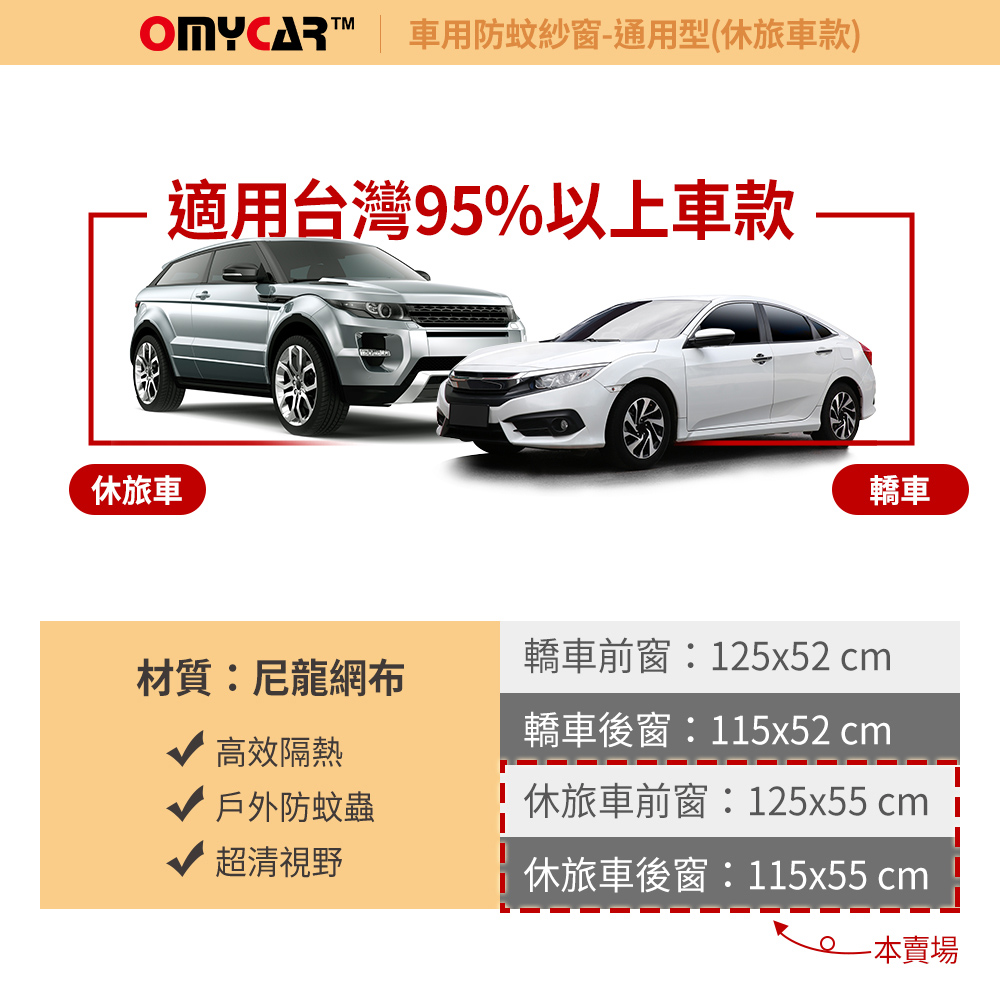 商品規格品名:【OMyCar】車用防蚊紗窗-通用型(休旅車款)材質:尼龍網布前窗尺寸:125x55cm ±5%後窗尺寸:115x55cm ±5%保固範圍:新品暇疵產地:中國(台灣監造)