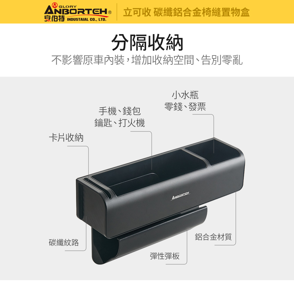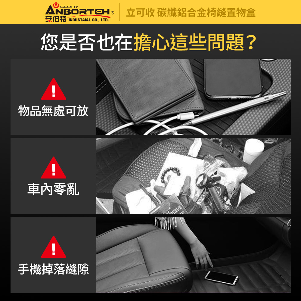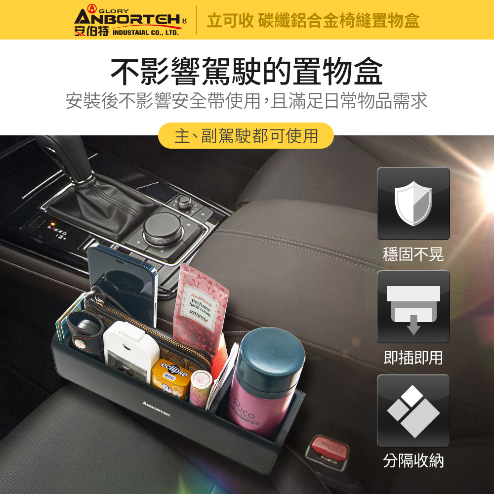 【安伯特】碳纖鋁合金椅縫置物盒讓您的愛車告別零亂,安裝後不影響安全帶使用,滿足日常物品收納需求~