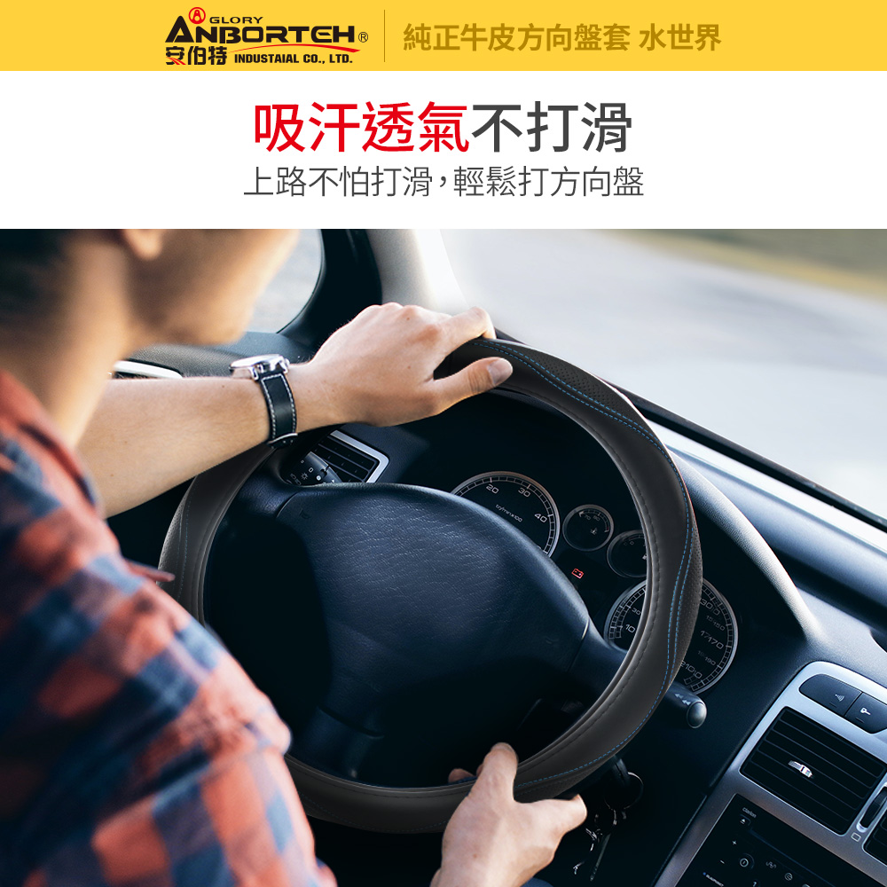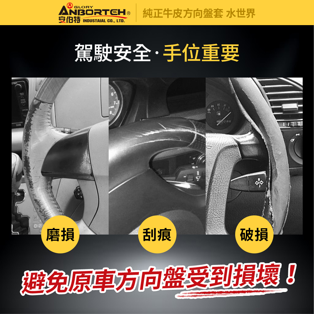 日常使用磨損,讓您的愛車老化減值【安伯特】純正牛皮方向盤套(水世界)讓您避免原車方向盤損壞~恢復顏值