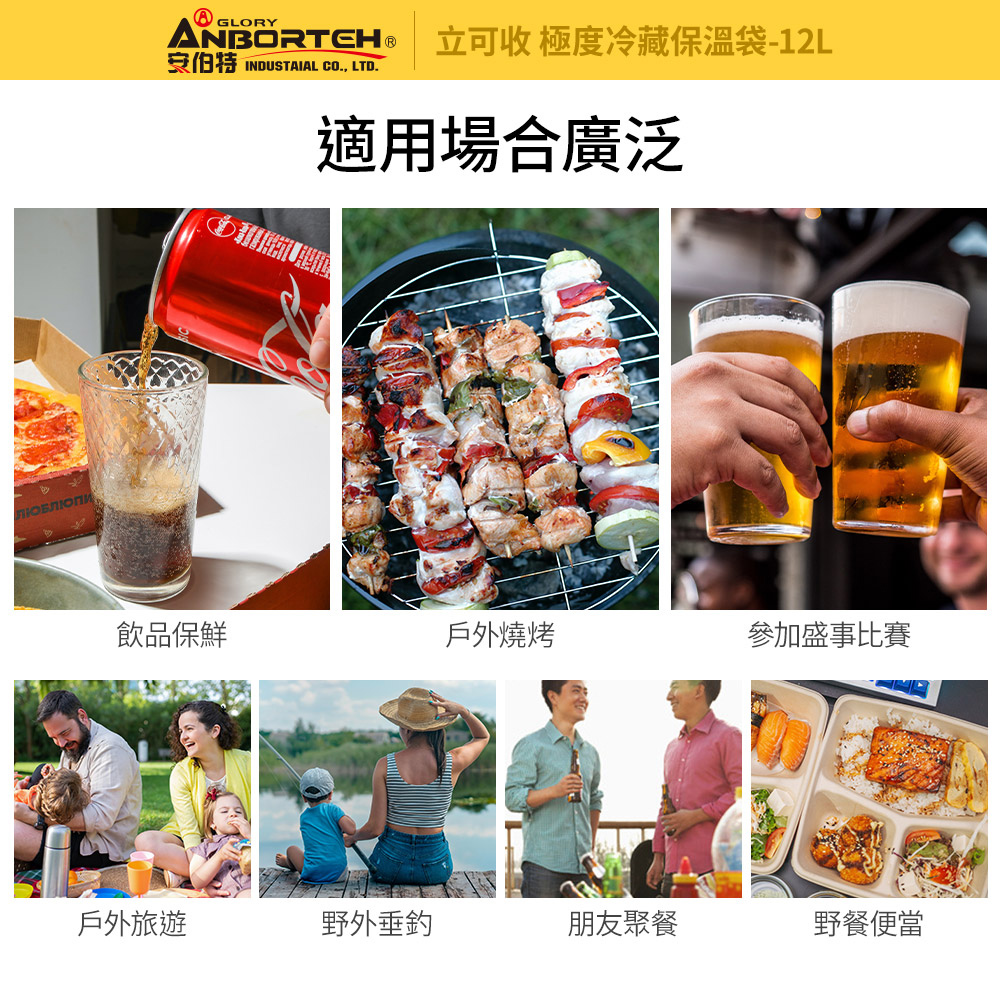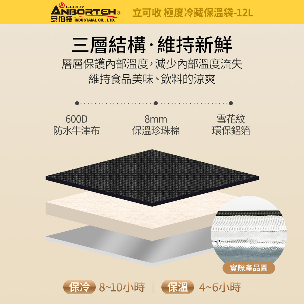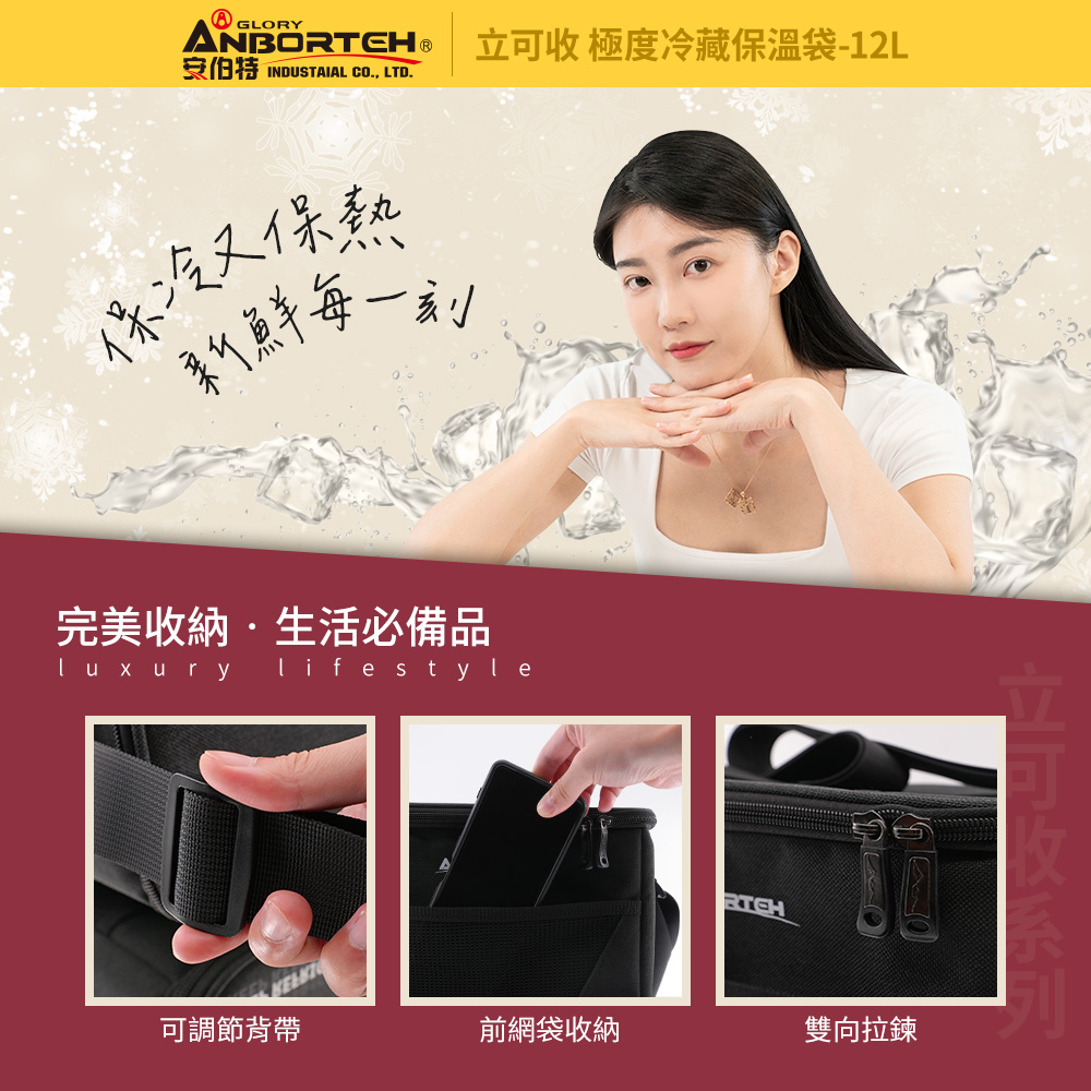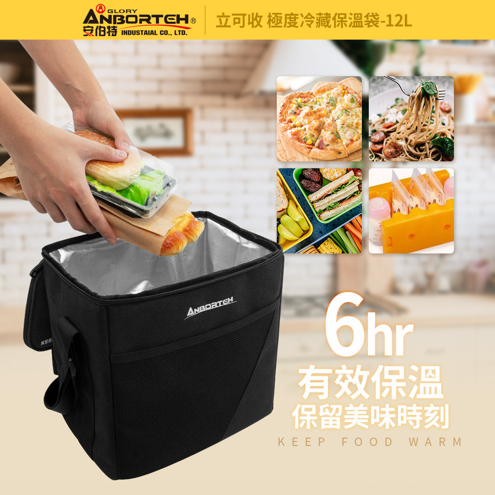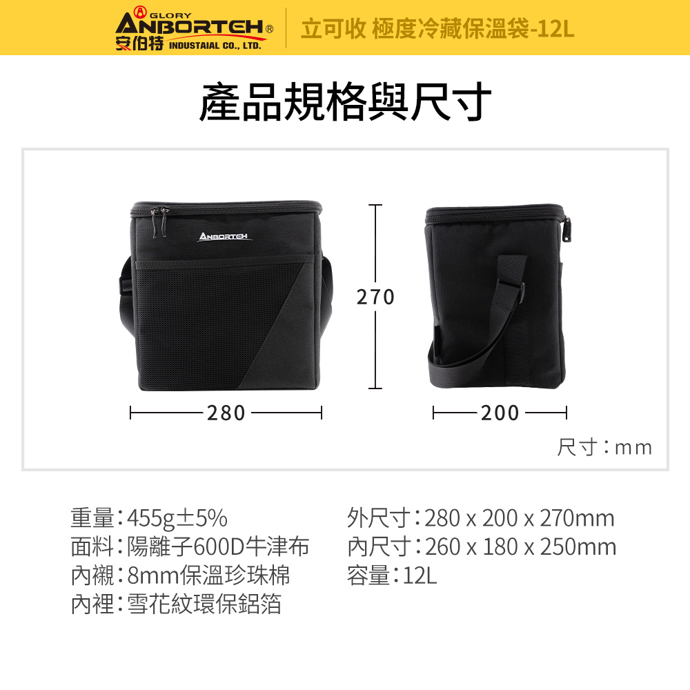 【安伯特】立可收極度冷藏保溫袋(黑色)12L-附側背帶熟食、飲品、蔬果保鮮,保溫保冰一袋搞定~ 長效冷藏 : 保冰時間可達8-10小時保溫鎖鮮 : 保溫時間可達4-6小時絕佳容量 : 大容量12L,居家戶外露營均可外側網袋 : 快取小物收納超便利,即視即取用三層加厚 : 600D牛津布+8mm保溫珍珠棉+雪花紋環保鋁箔,保冰保溫更持久