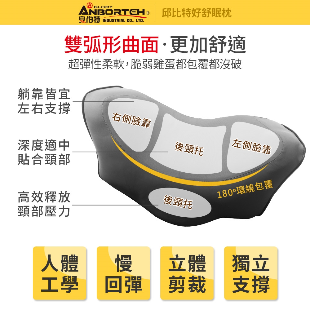 【安伯特】邱比特好舒眠枕符合人體工學設計,180度環繞包覆,獨立支撐緩解疲勞,舒適放鬆,不再疲勞駕駛,遠離脖子痠痛