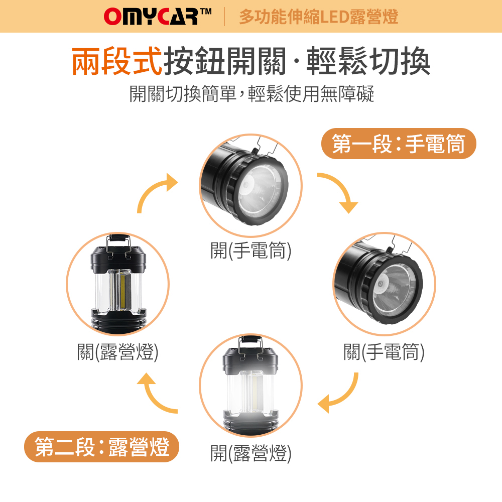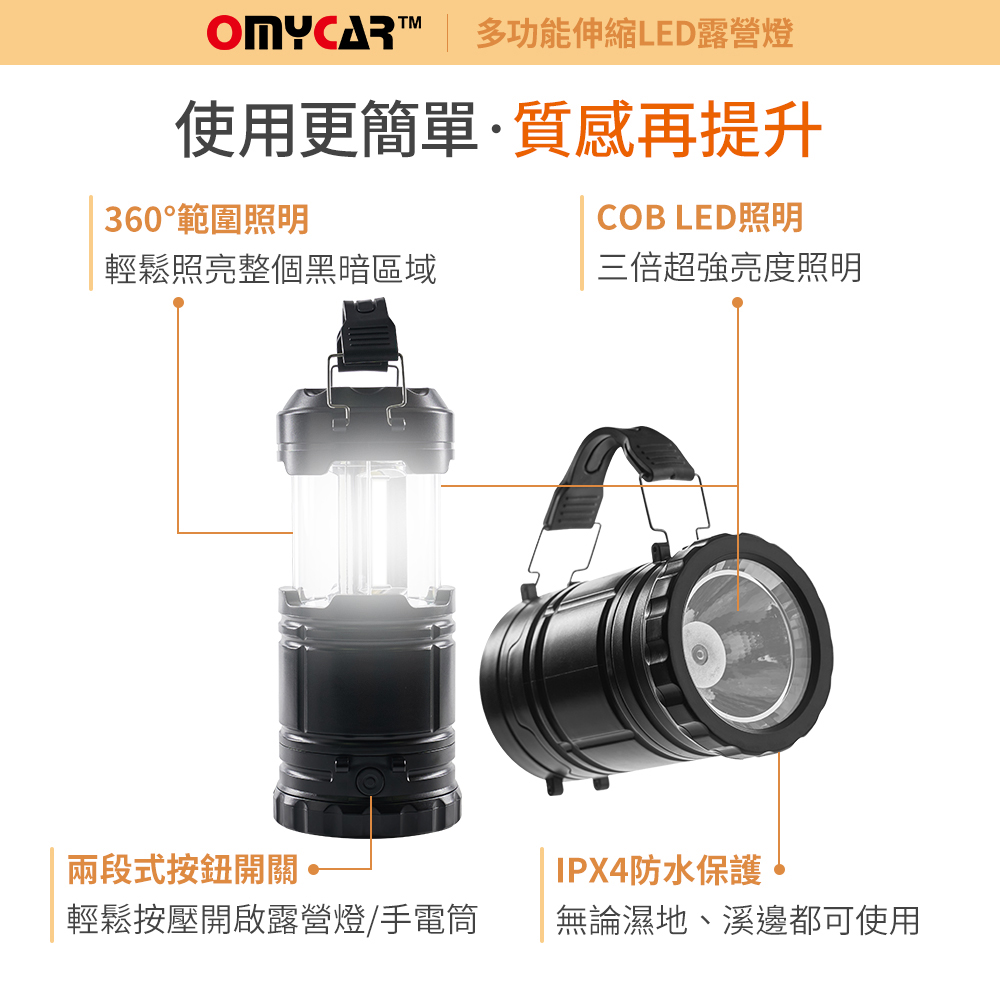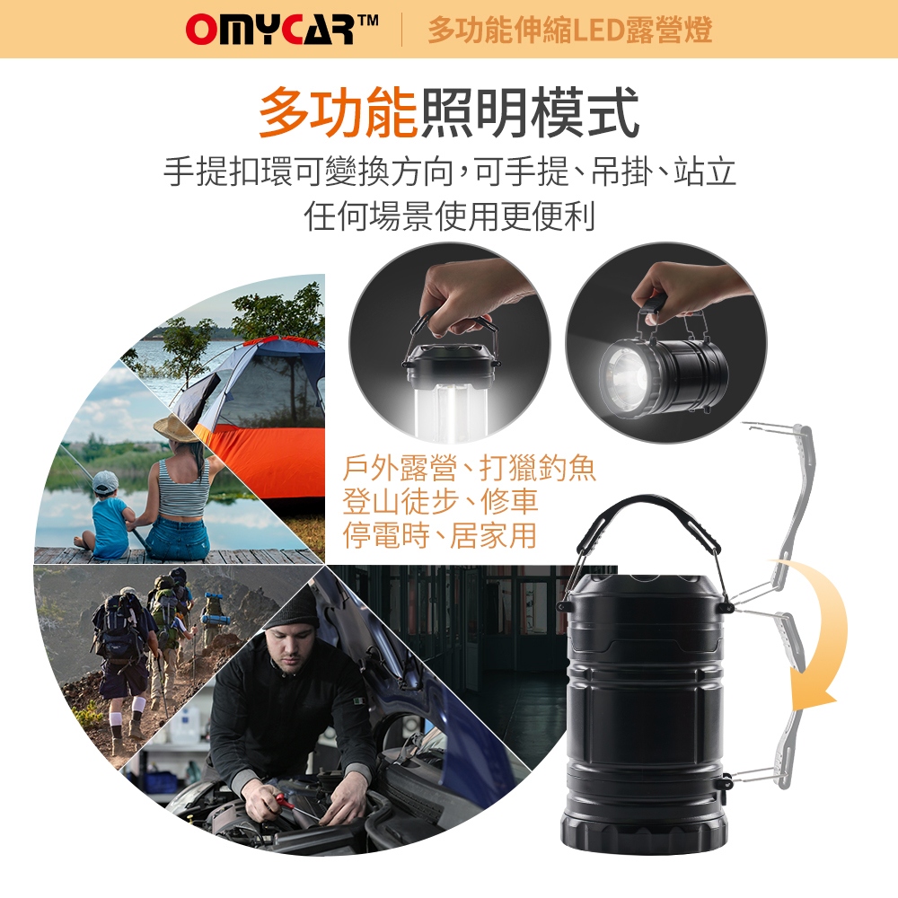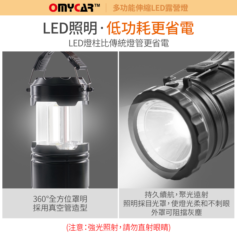【OMyCar】多功能伸縮LED露營燈 (可掛可提 遠射探照燈 照明燈 工作燈 營燈 燈具 照明設備)