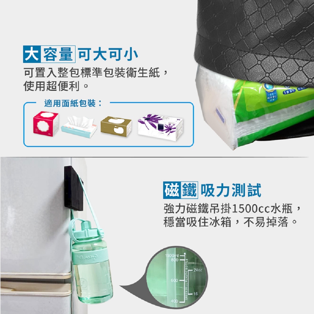 商品規格品名:【安伯特】不求人磁吸式面紙套-菱格紋料號:ABT-A071-1材質:PU皮革、強力磁鐵尺寸:230x125x95mm重量:170±5%保存期限:未拆封可永久保存產地:中國 (台灣監造)