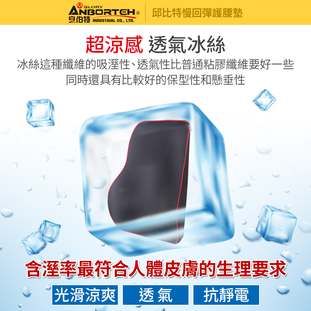 【安伯特】邱比特慢回彈護腰墊記憶枕芯 : 慢回彈、紓解壓力、柔和支撐涼感冰絲 : 涼爽、透氣、抗靜電使用廣泛 : 外出、旅行、車用、辦公室均可