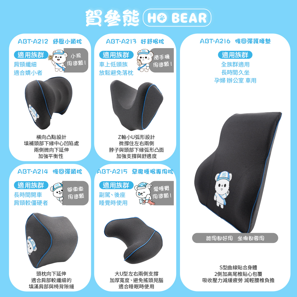 長期駕駛,頭頸懸空,不知不覺造成頸部壓力【安伯特】HO BEAR 賀參熊慢回彈頭枕 讓您頸部不壓迫,肩頸部懸空慢回彈記憶棉、釋放壓力、舒適柔軟