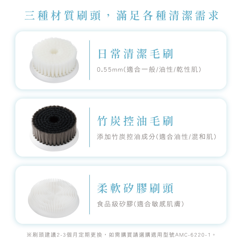 多功能刷頭|搭配三款刷頭,滿足各種清潔需求,徹底潔淨肌膚。