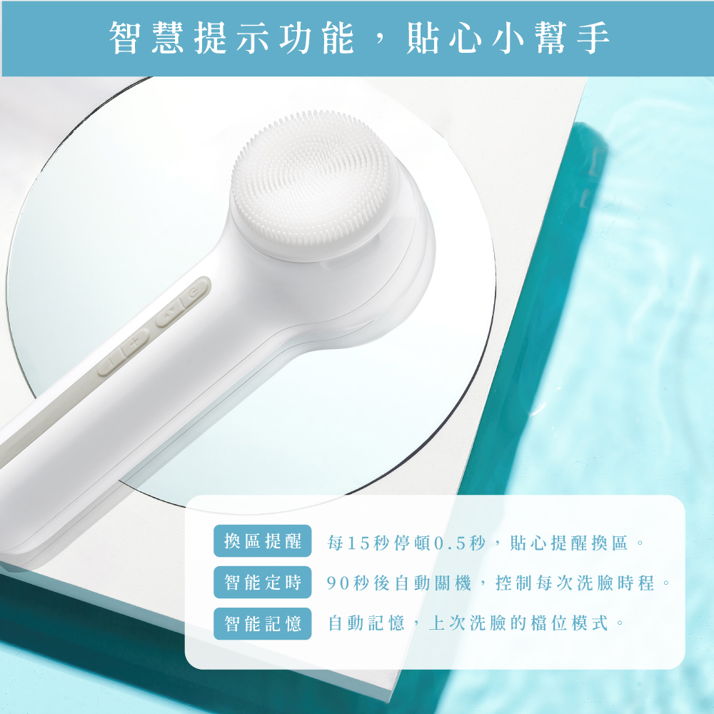 自動定時功能|90秒後自動關機,控制每次洗臉時程。
