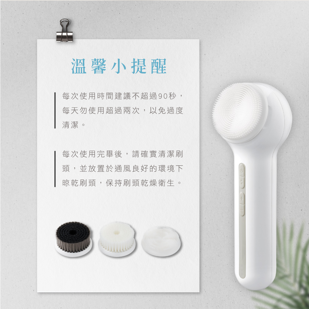 配件:USB充電線×1、洗臉刷頭x3、收納盒×1