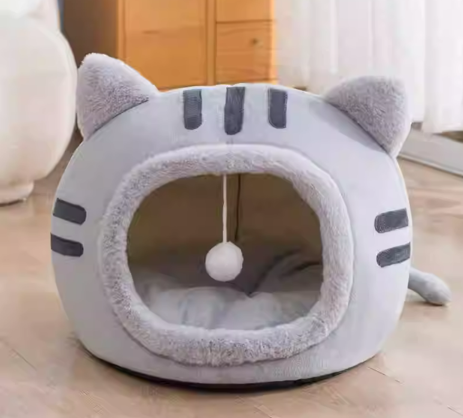 尺寸:50×50×36cm (適合體重10kg內)材質:晶絨布+PP棉填充顏色:灰色適用:貓咪/小型犬皆可附件:內附吊球玩具,增加互動趣味