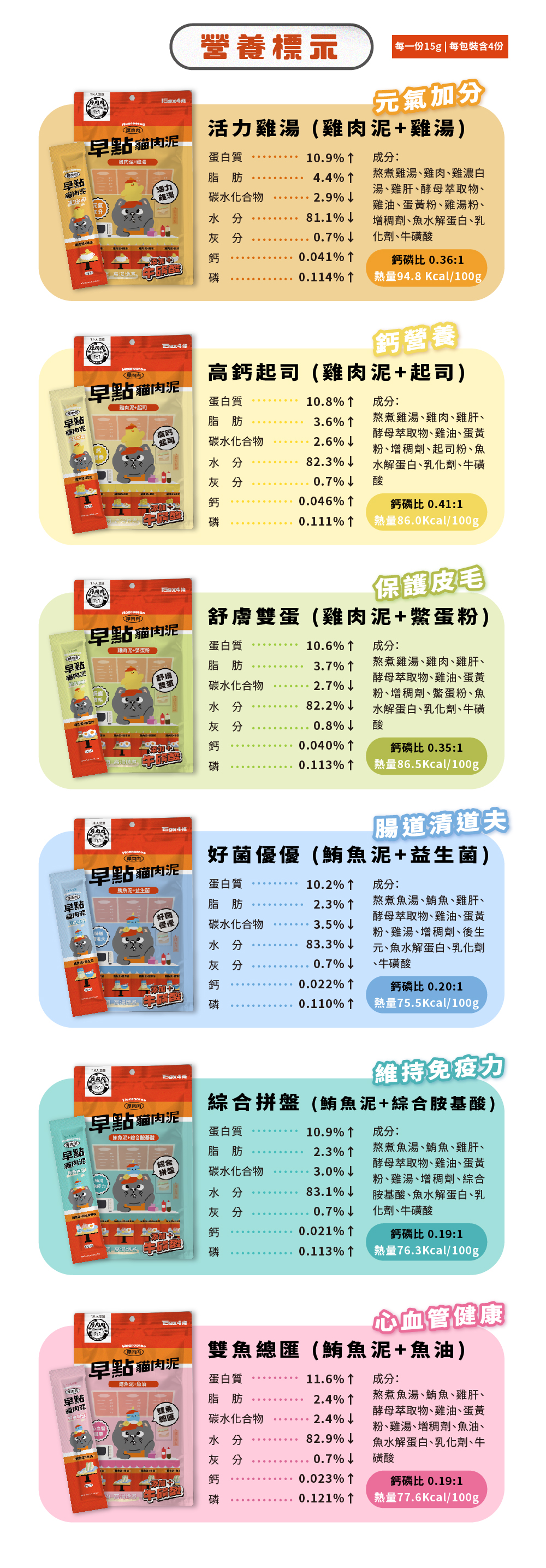 ▪︎ 幼貓、懷孕及哺乳貓的食量通常為一般成貓2~3倍,請視貓咪實際狀況,及年齡、體態、活動量調整為食量及餵食次數。