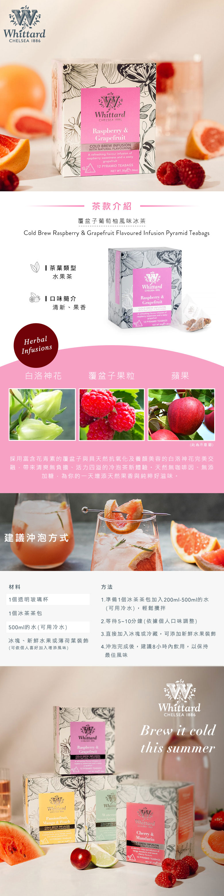 櫻桃與柑橘的黃金比例調和,為冷泡茶注入清爽提神的新風味。這款無咖啡因的創新飲品,讓你隨時隨地輕鬆享受果香風味,不論是瓶裝隨行冰鎮飲用或作為夏日涼爽飲品,都是理想選擇。這款無糖冷泡茶經過特殊處理,無需熱水沖泡,可直接使用冷水沖泡即可釋放充滿果香的天然風味,口感純淨自然、回味無窮。專為冷泡設計,是慵懶夏日午後的完美飲品。