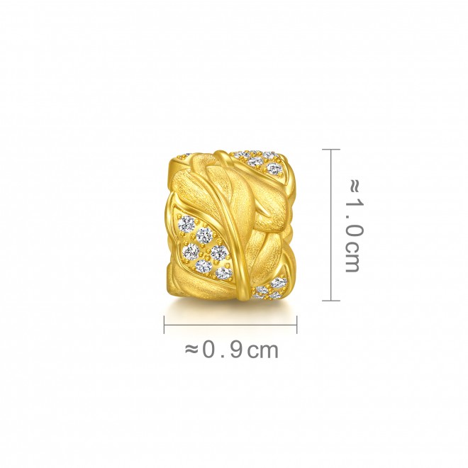 鑲嵌鑽石羽毛串珠,以手工勾絲工藝打造,賦予黃金如絲緞般光澤,