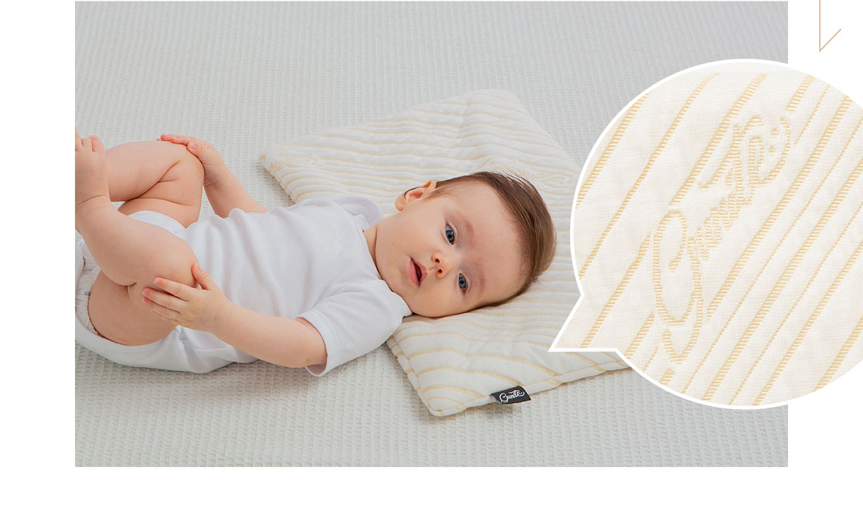 以精緻金色紗線手工刺繡,每一針都承載爸媽對寶寶深深的愛與呵護,也代表爸媽純粹且極致的寵愛。每個夜晚,寶寶在柔軟舒適的枕頭上安然入睡,感受無微不至的守護。