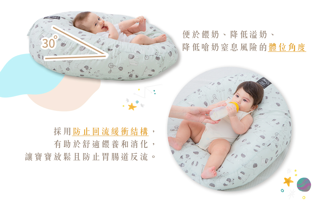 30°黃金角度gunite寶寶懶骨頭採用獨特的30°黃金角度,專為寶寶的舒適和安全考量。完美角度適合餵奶,能有效降低溢奶和嗆奶的風險,同時有助於寶寶的消化。更進一步採用防止回流緩衝結構,讓寶寶在喝奶的過程中享受更有安全感的餵養,並防止胃腸道反流。