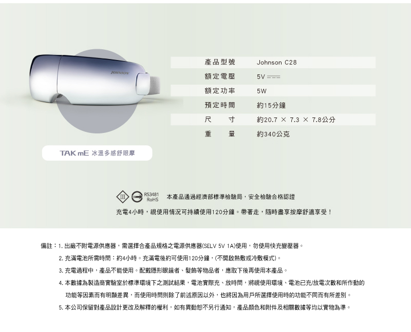 【美迪亞健康器材】JOHNSON| TAKmE帶著走 冰溫多感舒眼摩 原廠保固 交換禮物 聖誕禮物 生日禮物︱C28