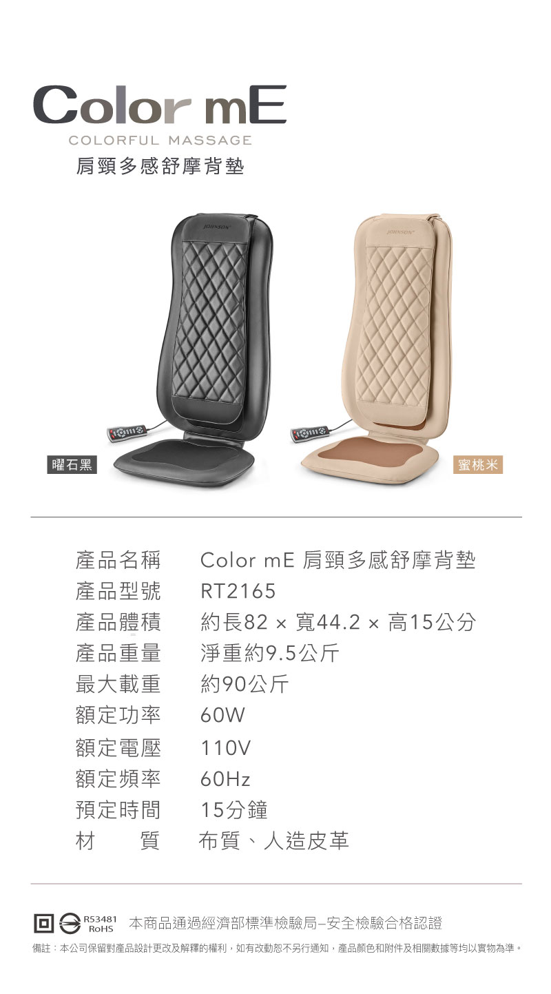 【美迪亞健康器材】JOHNSON|送禮首選 Color mE系列 肩頸多感舒摩背墊 按摩椅墊 原廠保固 生日禮物|RT2165