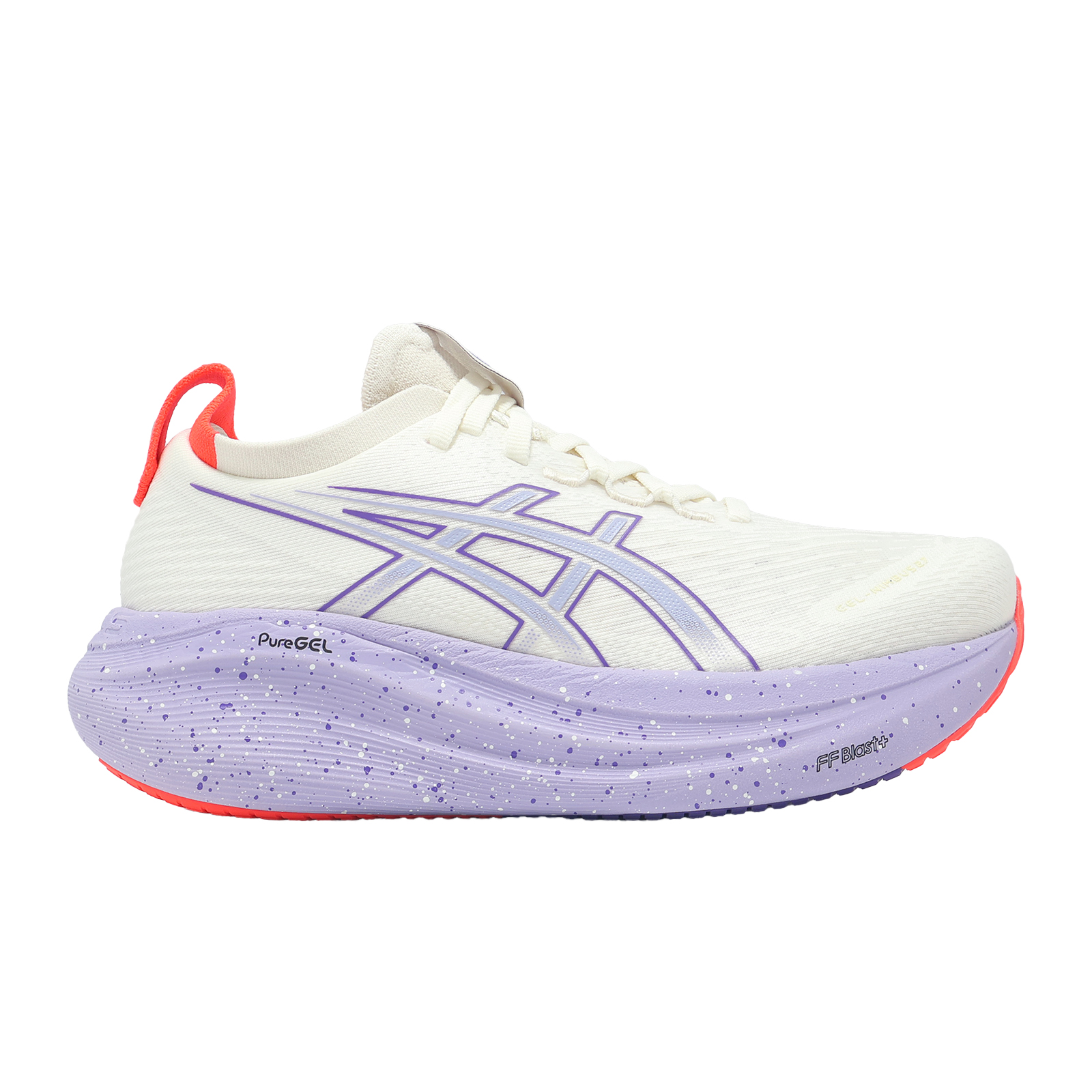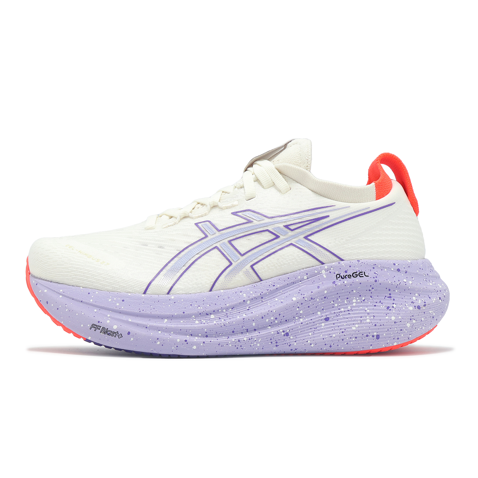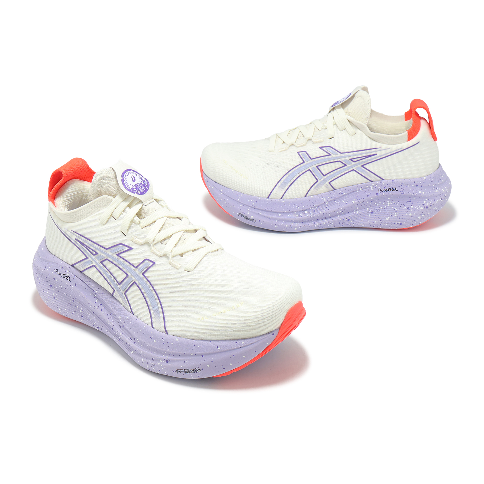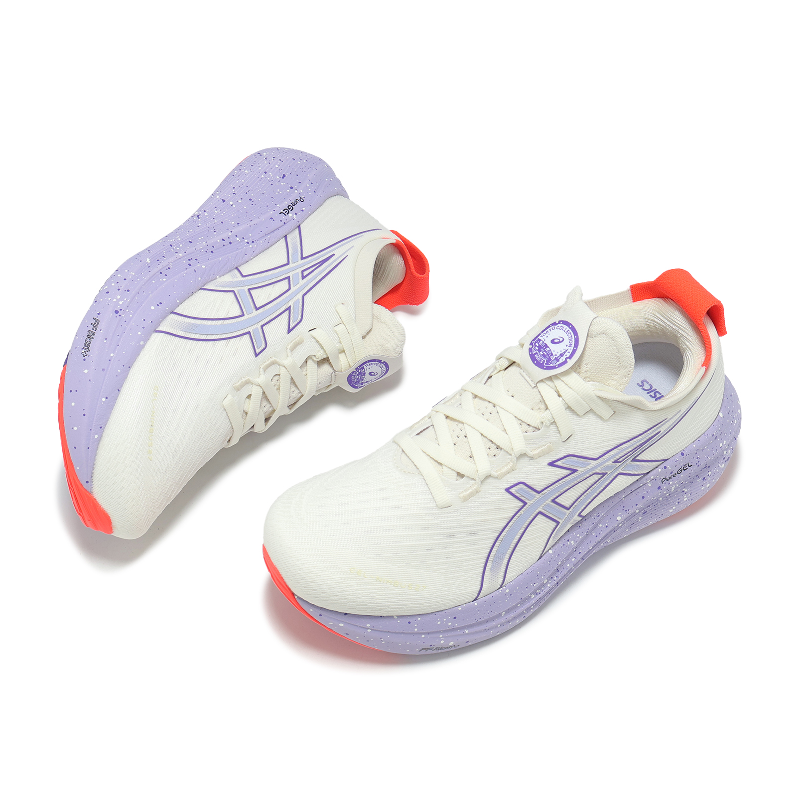 品牌: ASICS型號: 1012B913500品名: GEL-Nimbus 27 Tokyo版型: 版型正常* GEL-NIMBUS 27 TOKYO 東京系列,鞋舌印有東京國立競技場的圖樣,整體採用紫色為基底,搭配代表活力及熱情的旭日紅,以及象徵歡慶紙花的圖樣結合而成。