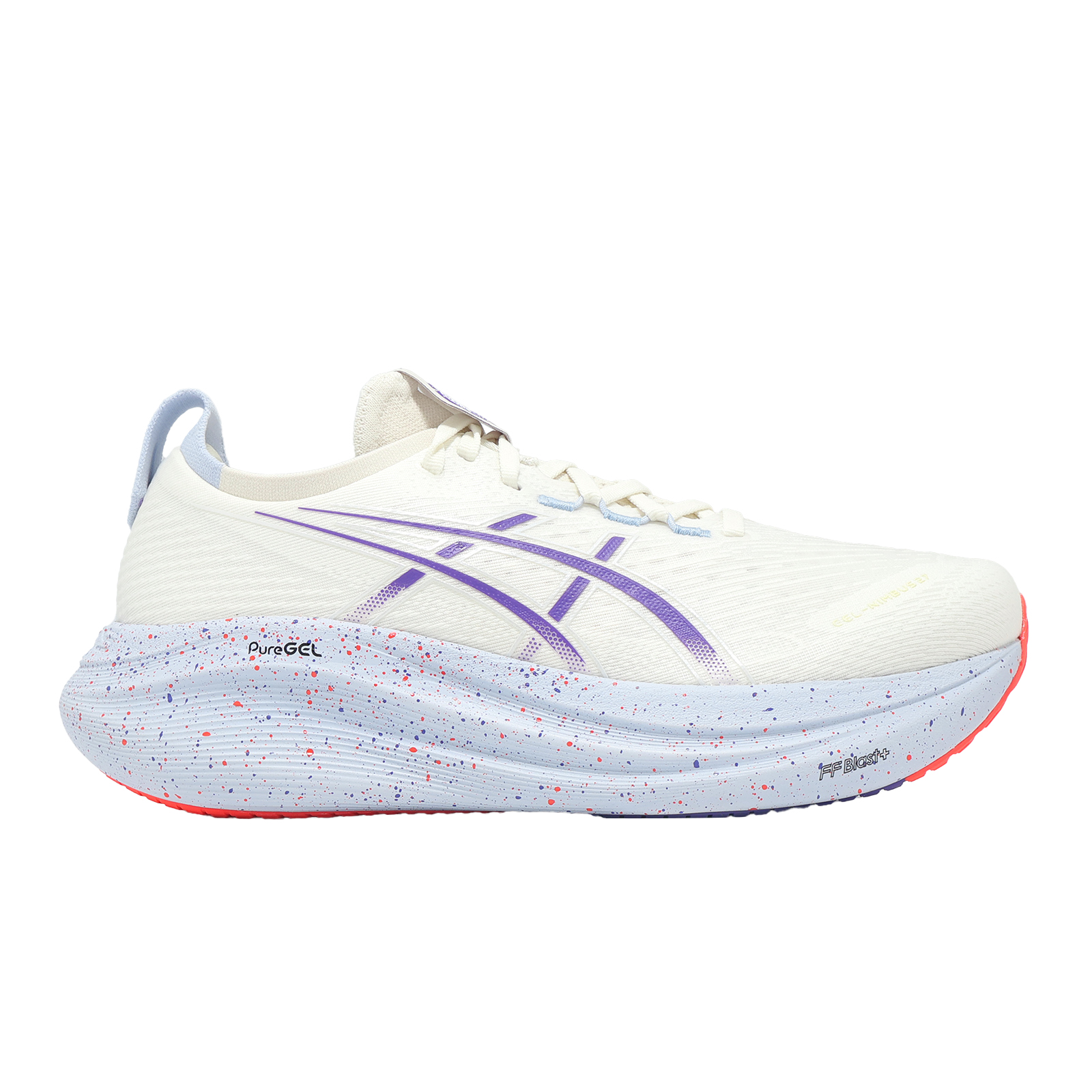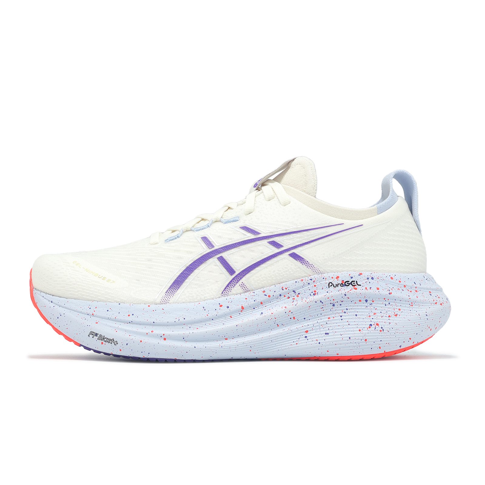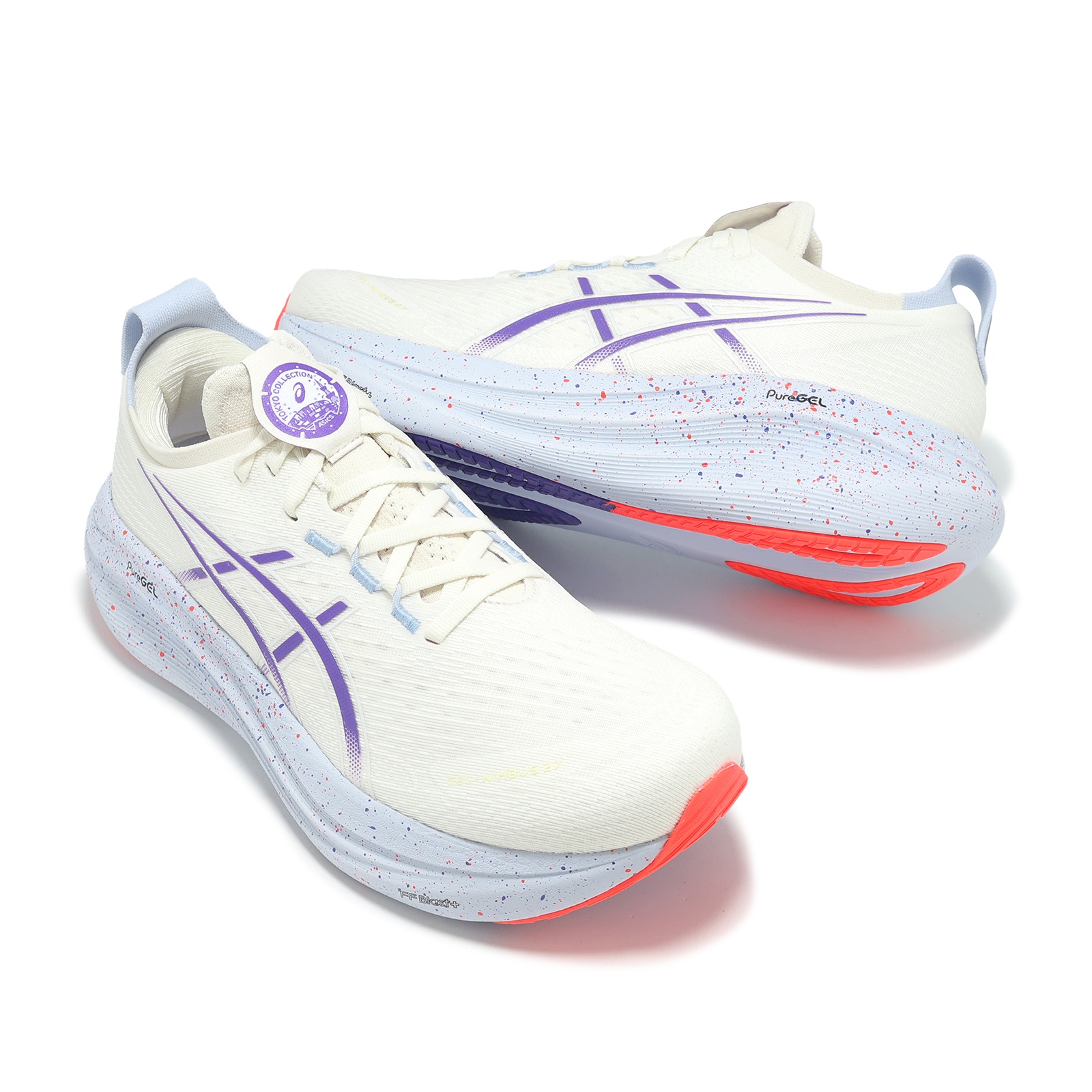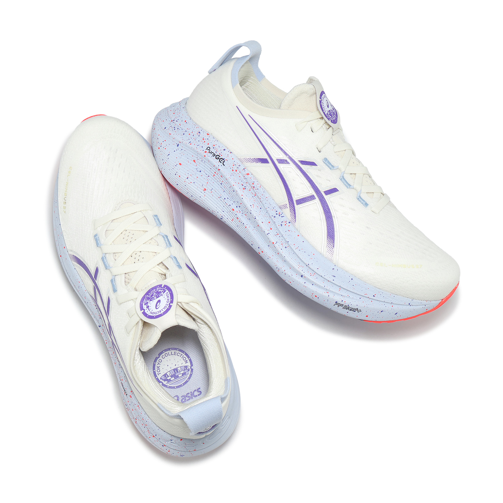 品牌: ASICS型號: 1011C120500品名: GEL-Nimbus 27 Tokyo版型: 版型正常* GEL-NIMBUS 27 TOKYO 東京系列,鞋舌印有東京國立競技場的圖樣,整體採用紫色為基底,搭配代表活力及熱情的旭日紅,以及象徵歡慶紙花的圖樣結合而成。
