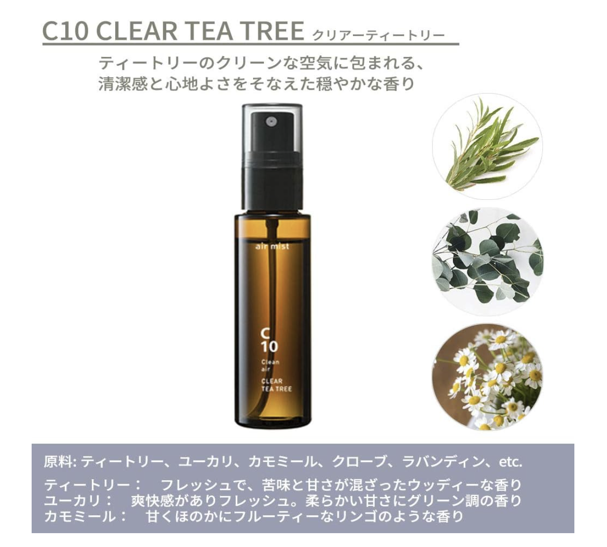 C10 清澈茶樹 溫和的香味,帶來潔淨舒適的感覺,籠罩在茶樹的清新空氣中。