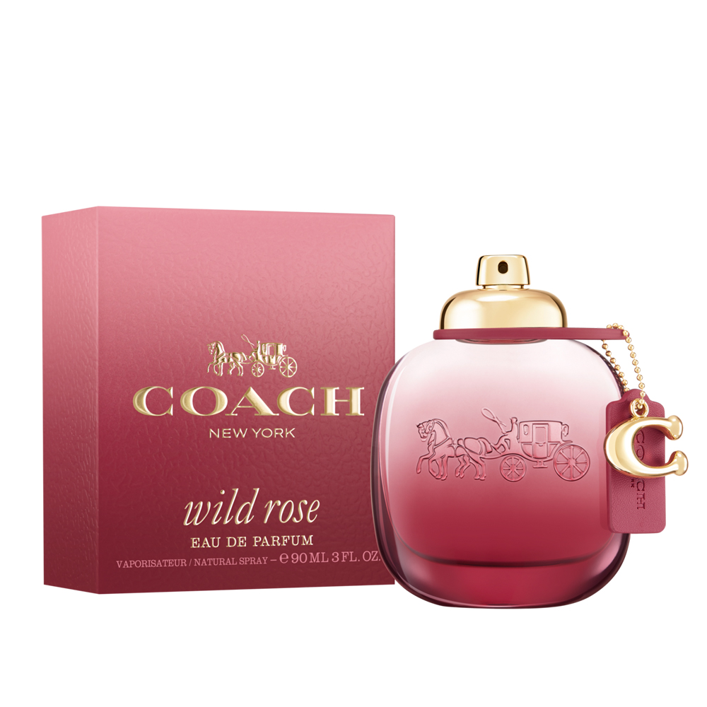 COACH 曠野玫瑰淡香精瓶身承襲經典系列,圓弧厚重瓶身上高尚雅致的刻印著COACH 經典馬車。靈感來源自浪漫的午後,顏色以漸層的勃根地紅呈現,象徵著成熟自由奔放的意念。並結合燦爛的金色無蓋旋轉噴頭,從容不迫地將優雅與獨立態度展露無疑。不可錯過的還有瓶頸處經典的皮革裝飾細節,勃根地紅品牌皮飾與金色經典C型字母LOGO吊牌點綴,當你噴灑香水搖曳之間,不僅感受到這股浪漫香氣,還可聽見厚實C型吊飾與玻璃碰撞出發生的脆響,宛如今夏最美的樂曲。盒身採用漸層酒紅色包裝,淺色壓紋飾有卵石紋,靈感源自品牌的皮革工藝傳統。