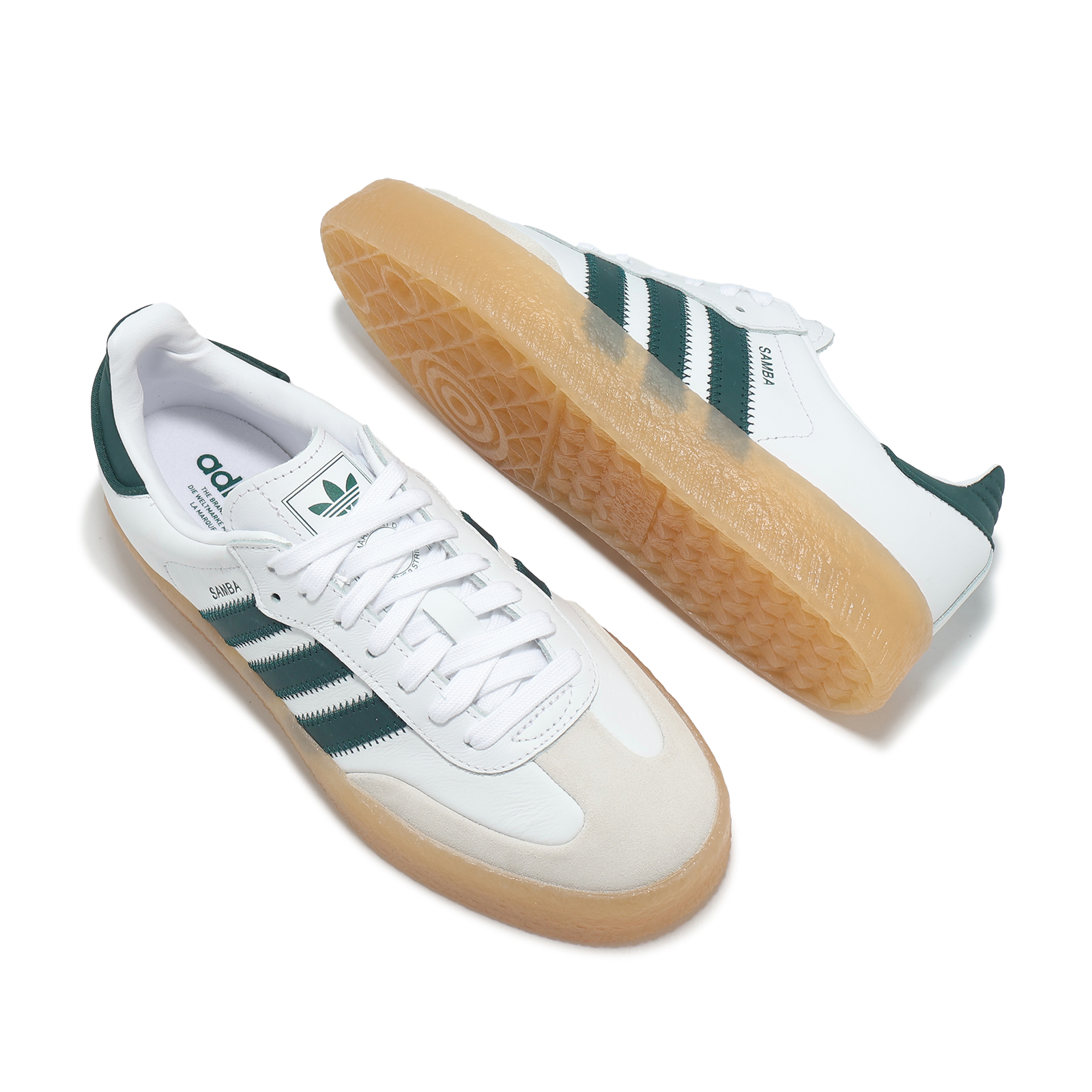 * 鞋面以皮革、麂皮元素與原色橡膠設計,搭配經典三條紋 Logo 豐富的鞋面元素可與多樣性服飾進行搭配。
