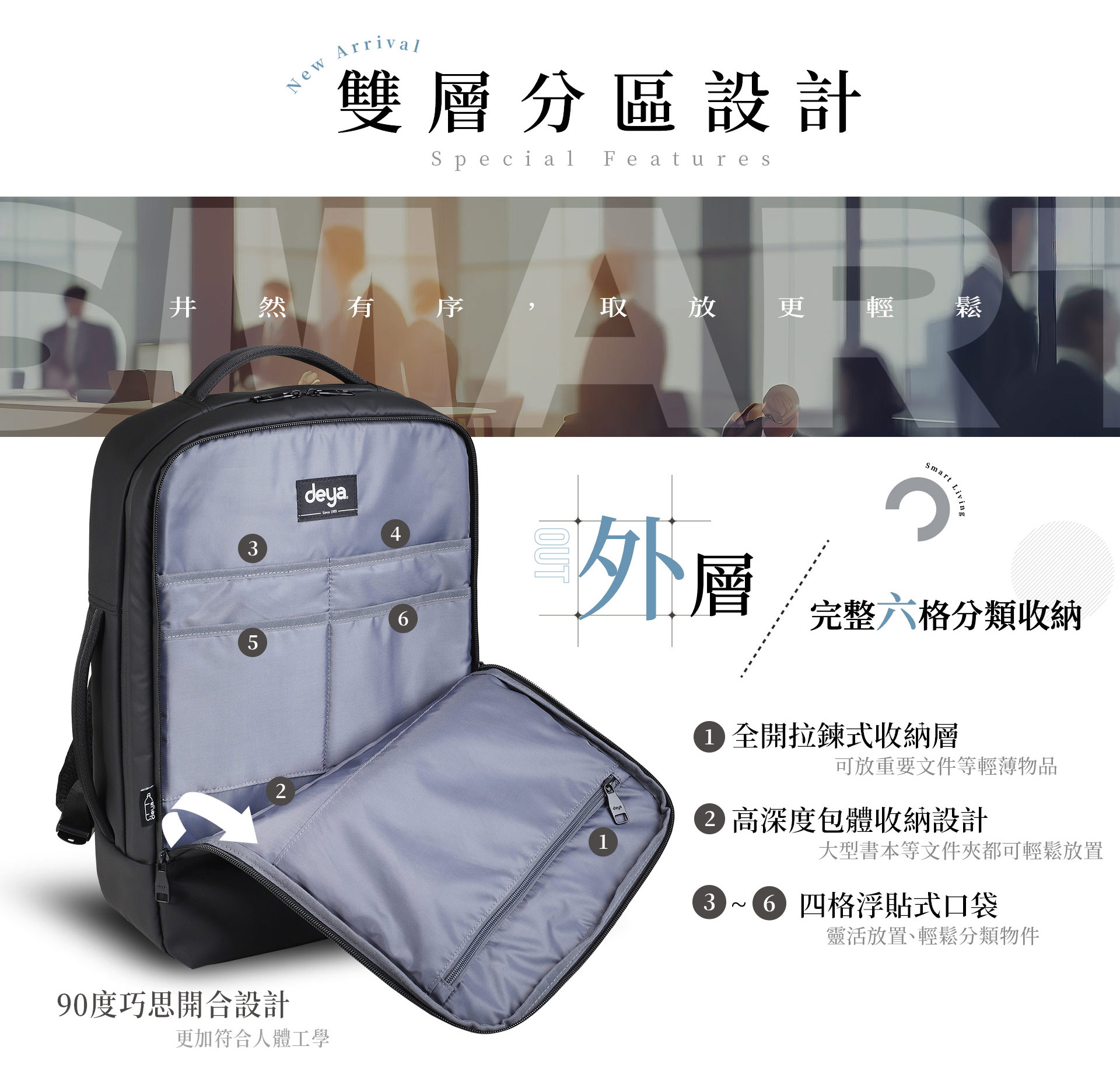 名稱:【deya】Smart 雙層機能電腦包