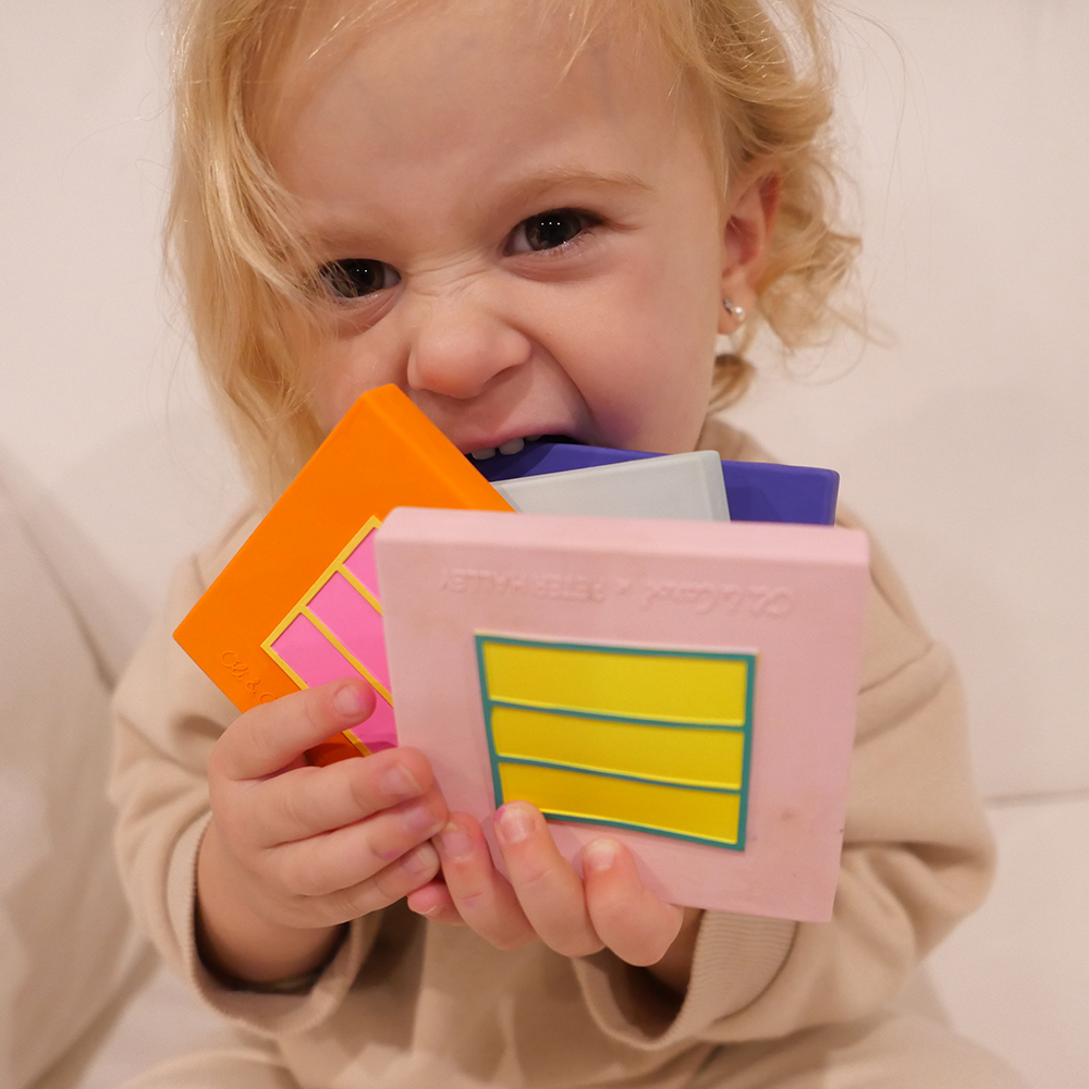 Oli&Carol x Peter Halley 是限量版的天然橡膠教育玩具,適合用於感官刺激、牙齦期啃咬以及洗澡時的遊戲