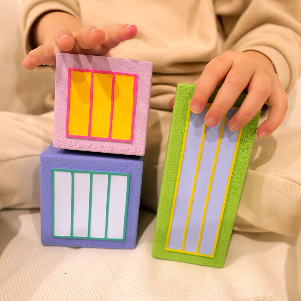 Oli&Carol x Peter Halley 是限量版的天然橡膠教育玩具,適合用於感官刺激、牙齦期啃咬以及洗澡時的遊戲。