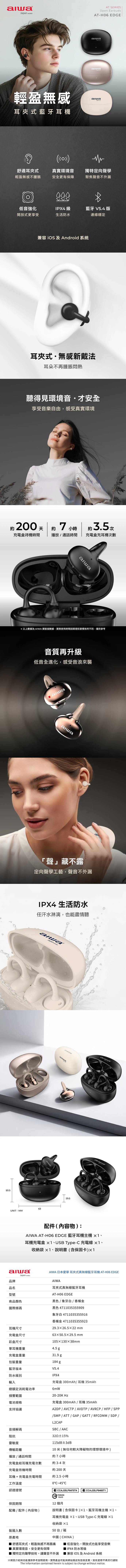 品名:AIWA 愛華 耳夾式真無線藍牙耳機 AT-H06 EDGE (黑色/白色/香檳金)