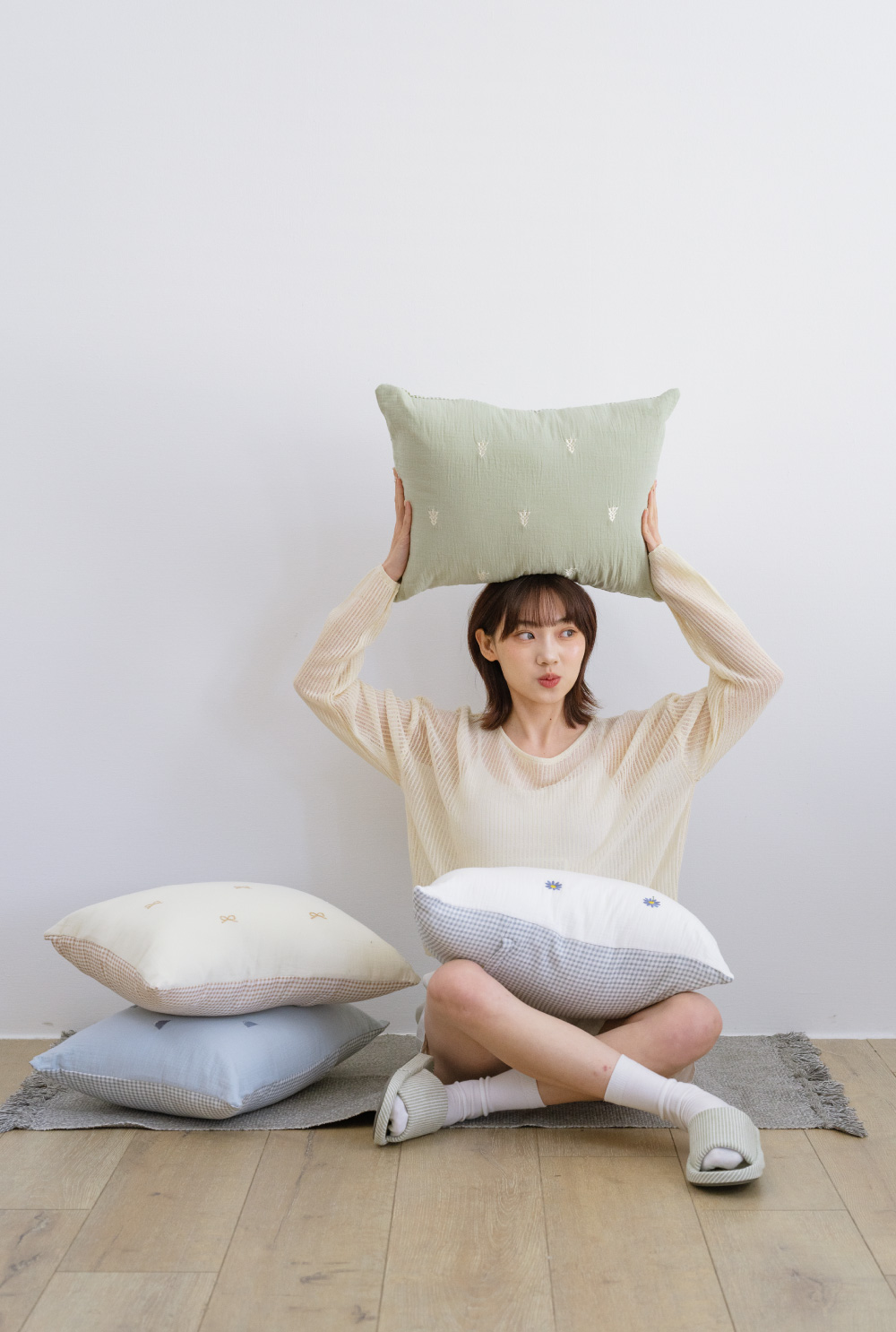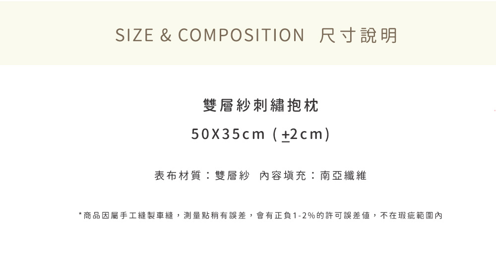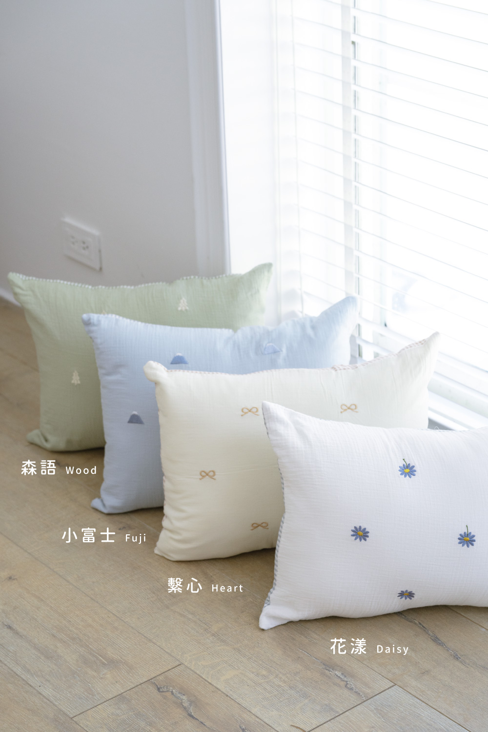 「家裡每個角落都想放一顆。」◆ 100% Cotton 長絨綿花製成,細緻耐用◆ 二重紗/雙層紗材質,蓬鬆透氣、貼身柔軟◆ Made in Taiwan 台灣製造,品質安心※本商品尺寸為35 x 50 cm,含枕芯