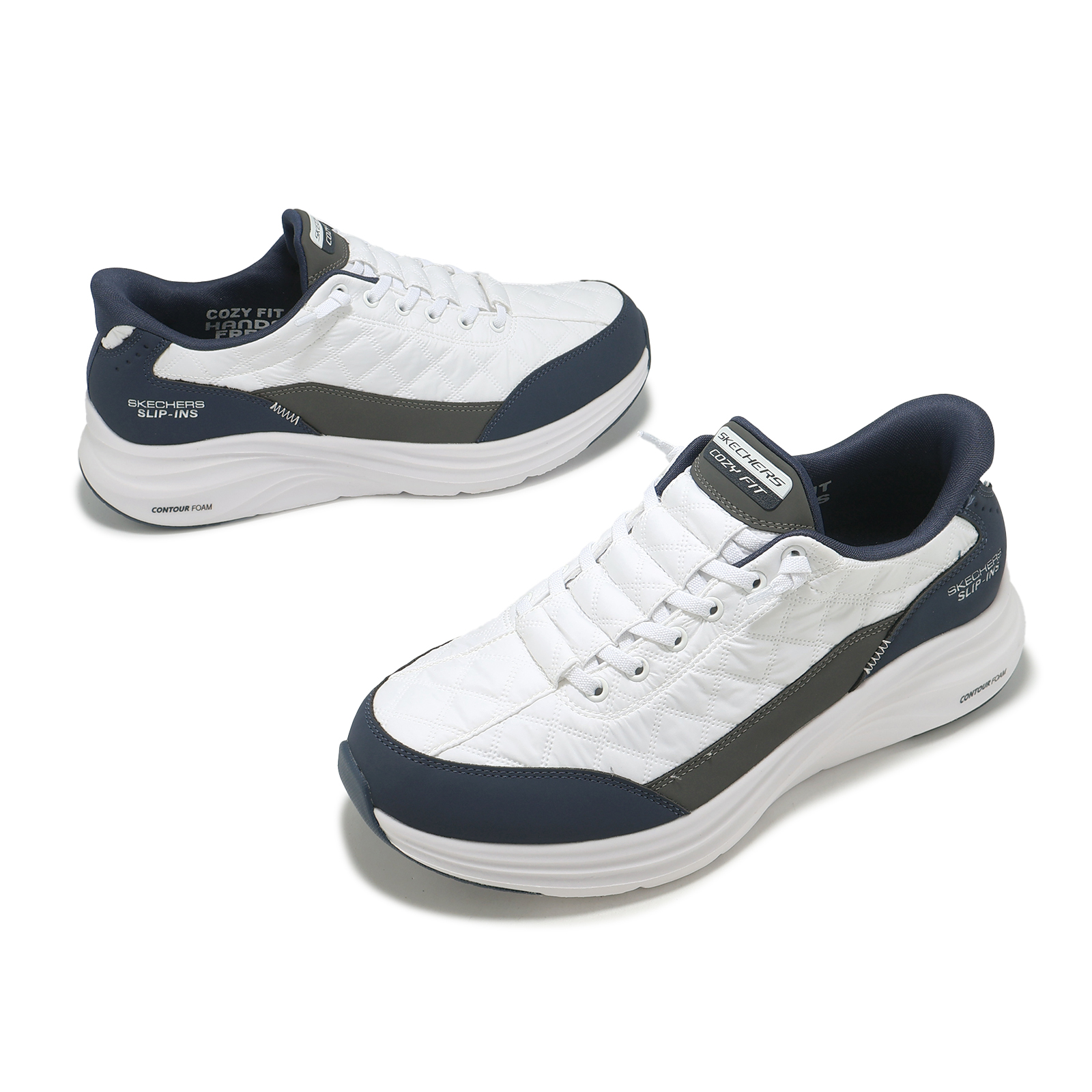 品牌: SKECHERS型號: 232619-WWNV品名: Contour Foam-Cozy Fit Wide Slip-Ins版型: 版型正常*1.CONTOUR FOAM 避震緩衝中底,超級輕量,可適應您腳的形狀,柔軟每一步,讓每一步都更加輕鬆。