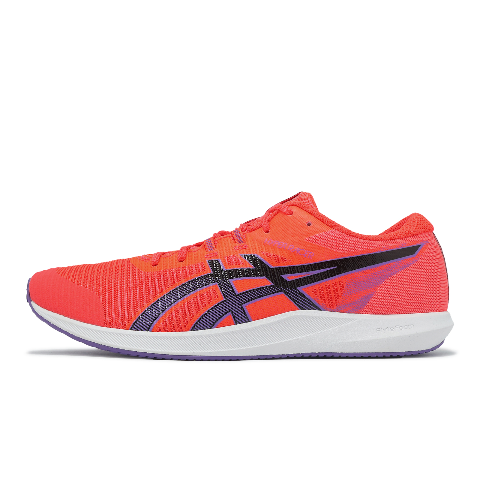 品牌: ASICS型號: 1093A233600品名: Hyper Racer版型: 版型偏小, 建議大半號* 鞋面採用無縫網布製成,提供雙足輕盈透氣腳感。