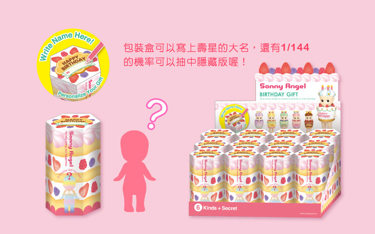 Sonny Angel生日蛋糕出爐囉!這次Angel變身甜蜜生日蛋糕為你送上祝福,繽紛可愛的色彩、精緻的裝飾,頭上還插著超可愛的蠟燭,一共推出6種口味:濃情巧克力、沁涼薄荷、藍莓優格、奶油草莓、清新檸檬、酸甜覆盆莓,夢幻甜蜜的生日蛋糕系列,絕對是最佳生日好禮!