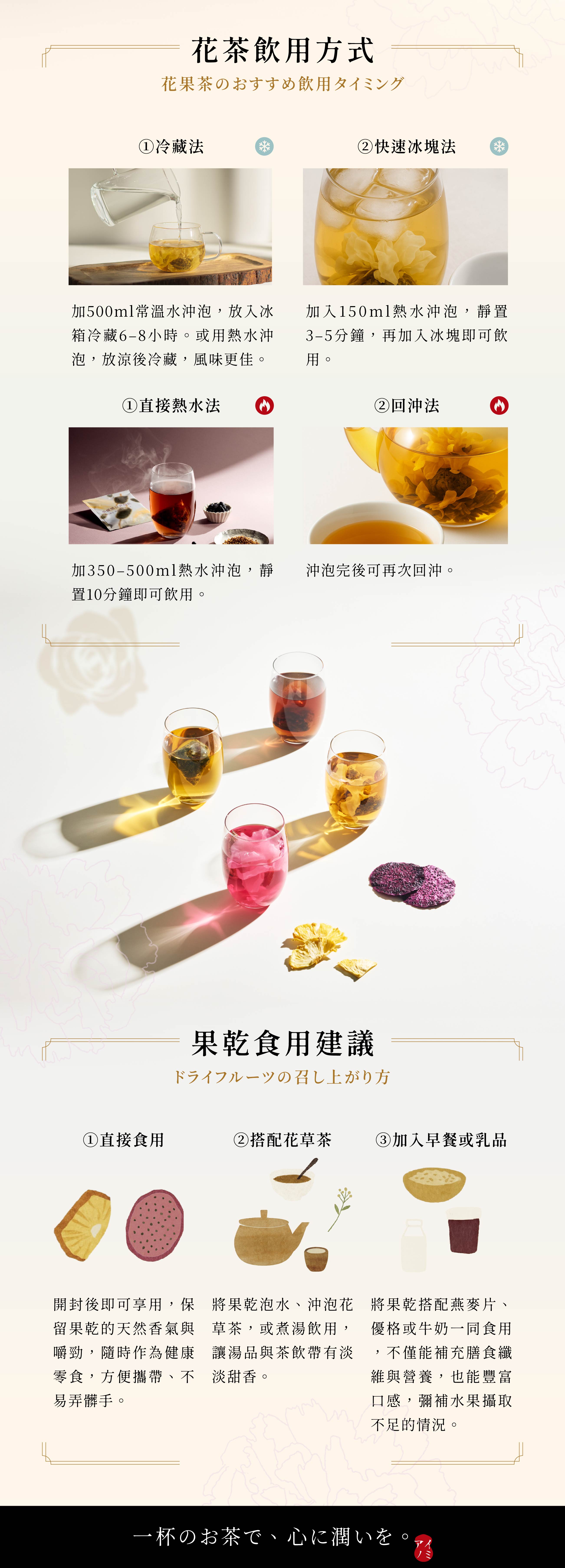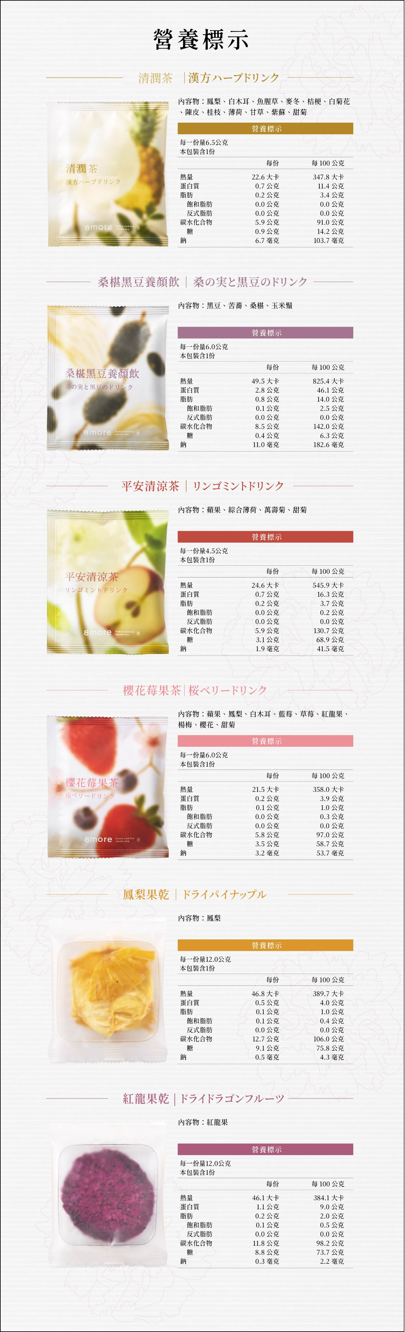 ◆商品內容產品規格:1盒(常溫)口味:櫻花莓果茶包x3、平安清涼茶包x3、清潤茶包x3、桑椹黑豆養顏茶包x3、鳳梨果乾x1、紅龍果乾x1產地:100%台灣