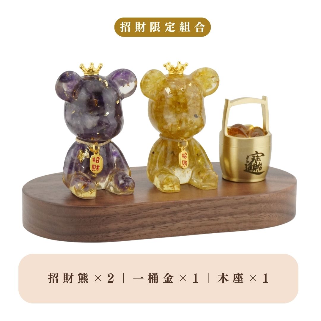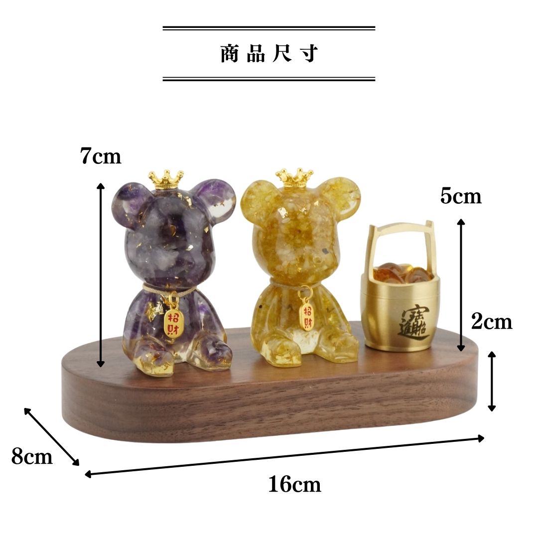 Hourrae荷萊 雙入招財好運晶熊 招財吊牌 一桶金 木座組 開店禮 生日禮 水晶擺件