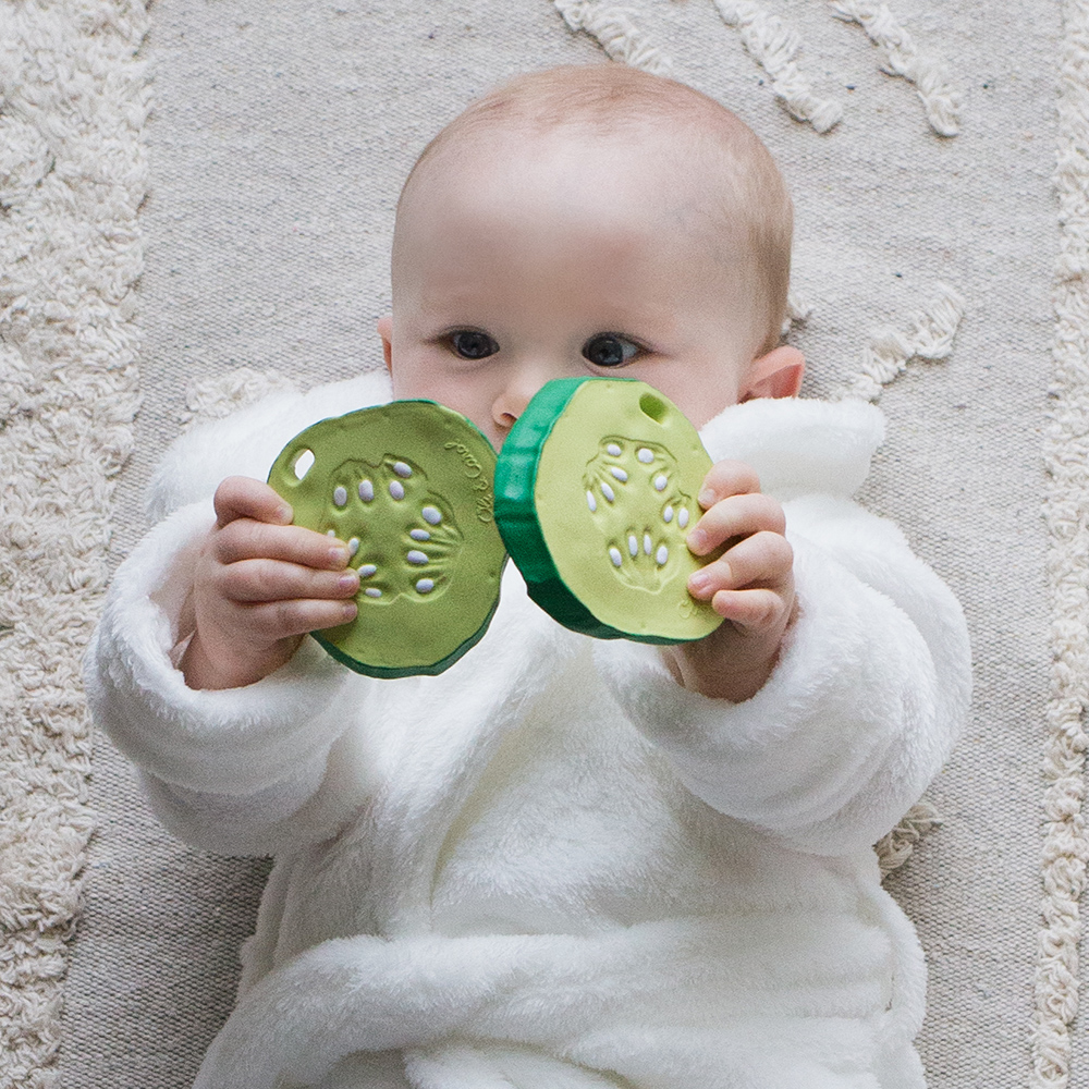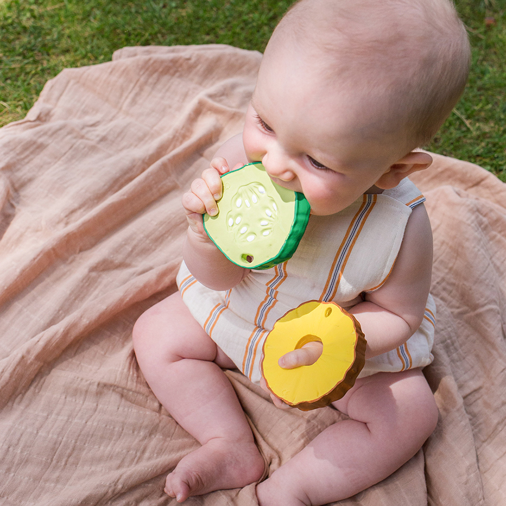 選用100%天然乳膠製成,柔軟安全、好抓握,適合出牙期的寶寶使用。以天然色素手工上色,無毒無孔洞,遠離細菌與霉菌,兼具衛生與環保。可作為咬牙器、洗澡玩具或感官遊戲玩具使用,每一件皆為手工製作,質感細緻。