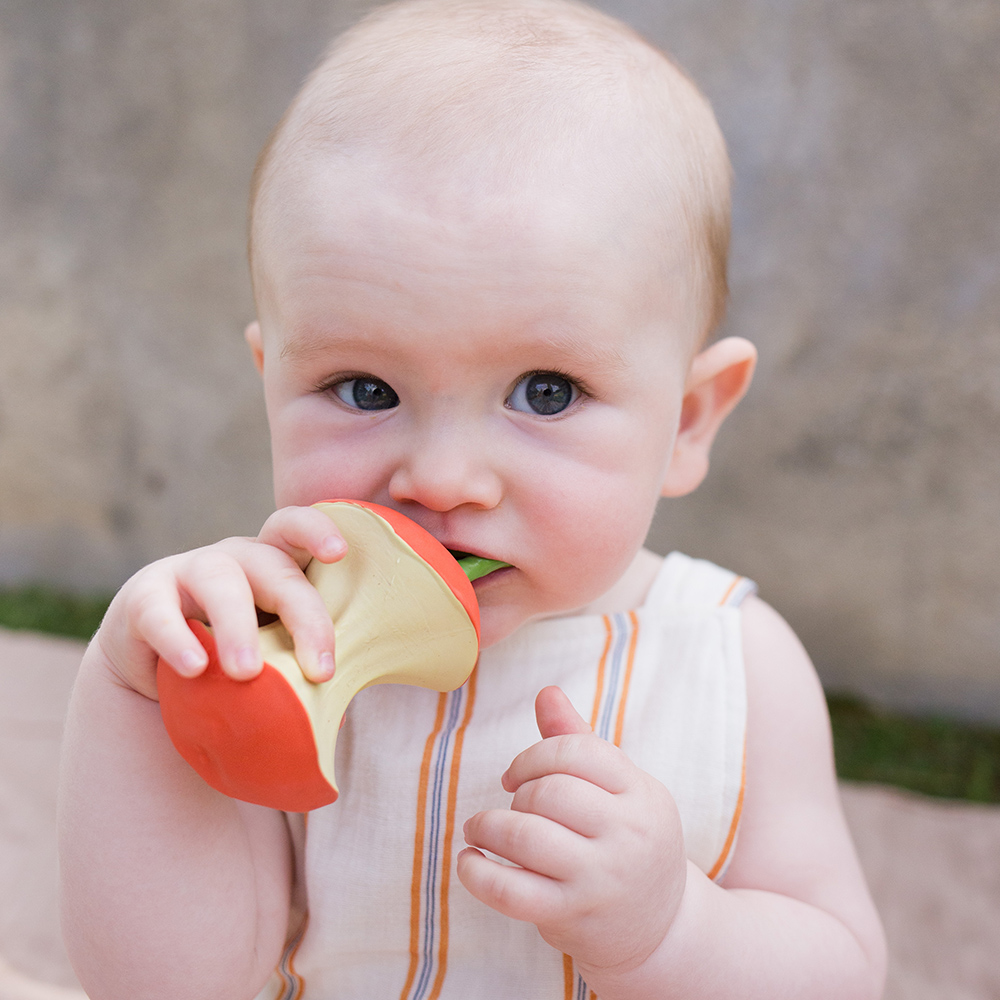 選用100%天然乳膠製成,柔軟安全、好抓握,適合出牙期的寶寶使用。以天然色素手工上色,無毒無孔洞,遠離細菌與霉菌,兼具衛生與環保。可作為咬牙器、洗澡玩具或感官遊戲玩具使用,每一件皆為手工製作,質感細緻。