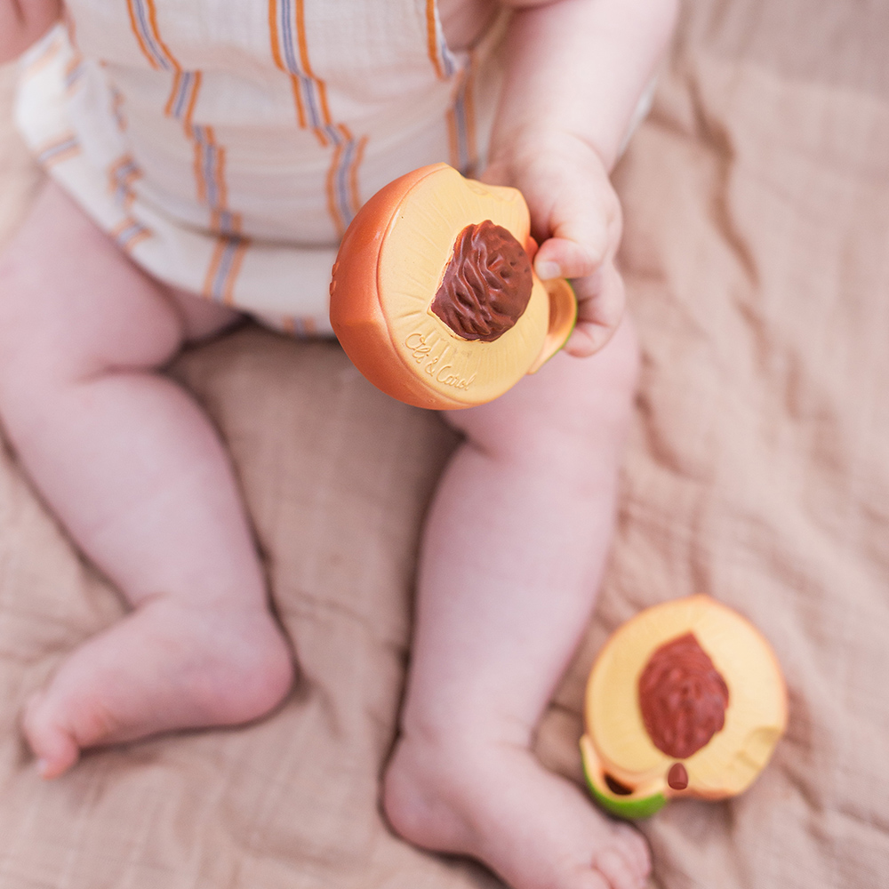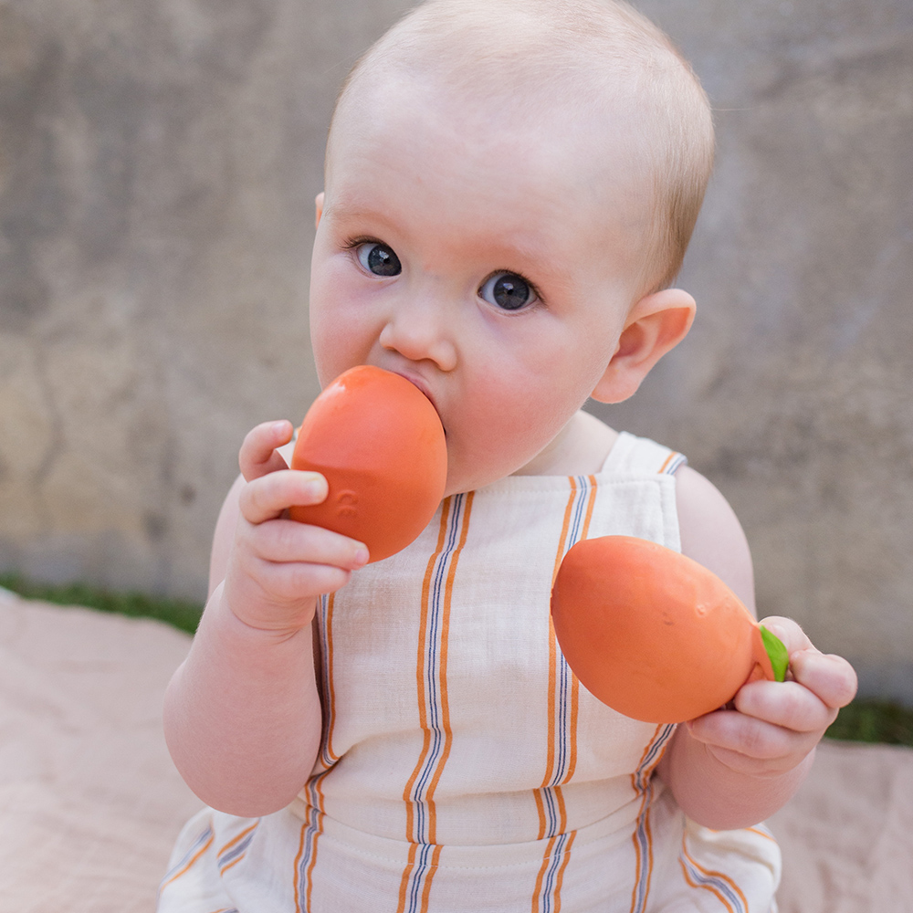 選用100%天然乳膠製成,柔軟安全、好抓握,適合出牙期的寶寶使用。以天然色素手工上色,無毒無孔洞,遠離細菌與霉菌,兼具衛生與環保。可作為咬牙器、洗澡玩具或感官遊戲玩具使用,每一件皆為手工製作,質感細緻。