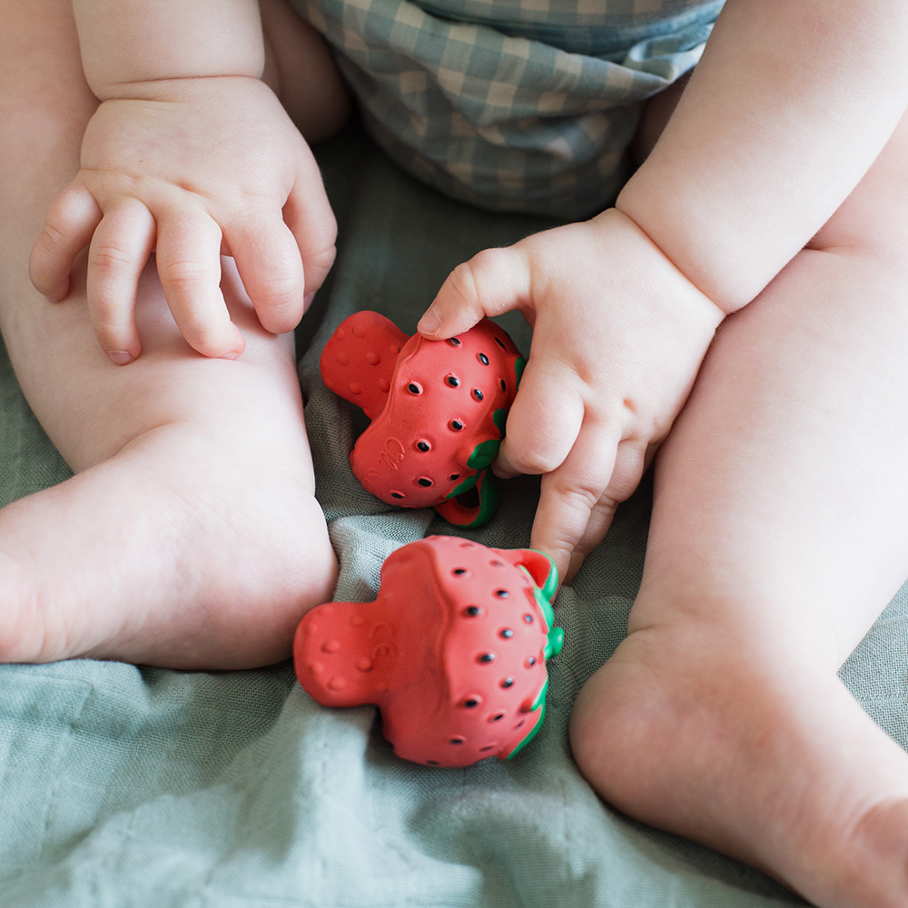 選用100%天然乳膠製成,柔軟安全、好抓握,適合出牙期的寶寶使用。以天然色素手工上色,無毒無孔洞,遠離細菌與霉菌,兼具衛生與環保。可作為咬牙器、洗澡玩具或感官遊戲玩具使用,每一件皆為手工製作,質感細緻。