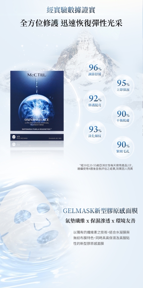 買就送1ML試管淡香精【McCTILL美珂媞歐】全方位奧秘修護冰河波光面膜 (5片裝) 膠原感 27ML 天然植萃 超服貼 面膜推薦