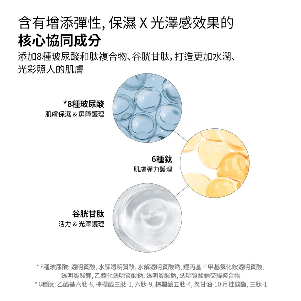 🟢 8種玻尿酸:皮膚保溼和屏障護理