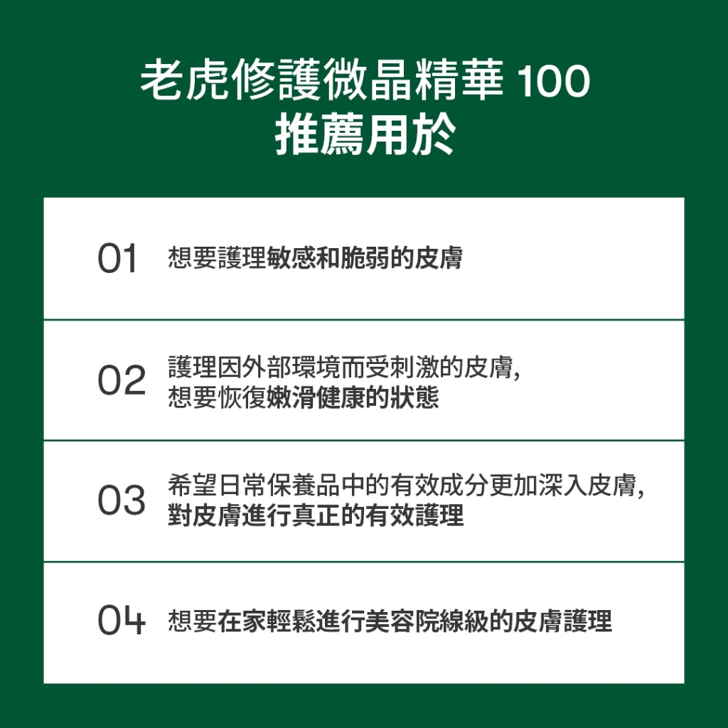一次只使用一種產品,讓您的皮膚充分吸收 老虎微晶精華