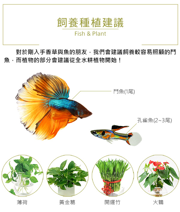 ※建議飼養體積較小的淡水魚種,例:金魚/鬥魚/球魚/米老鼠/孔雀魚...等